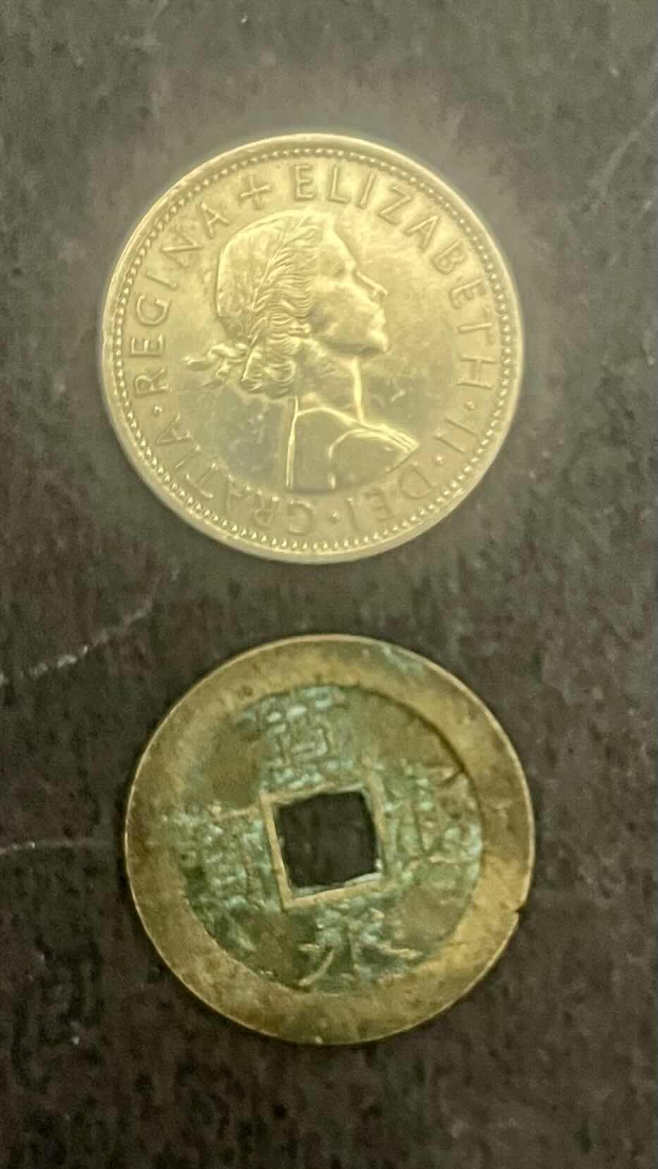 02 Moedas Estrangeiras - Japão 1769 - Reino Unido 1966 - Mbc - ref.821