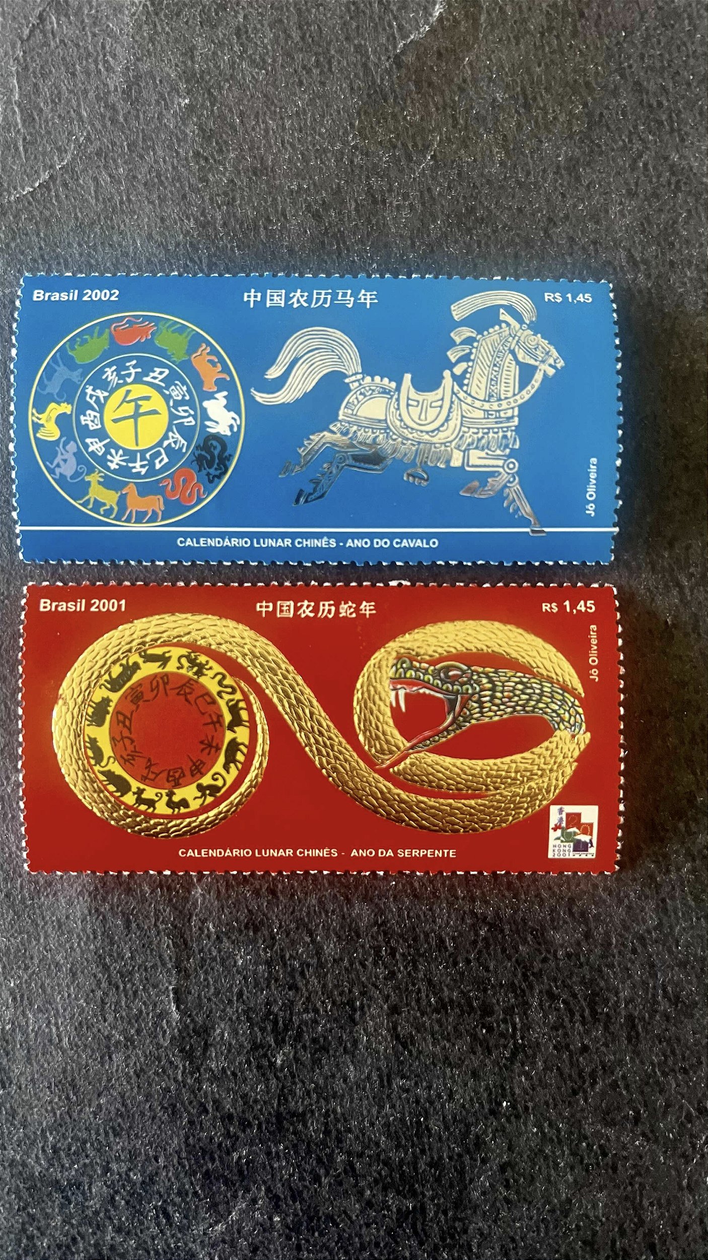 02 Selos Comemorativos do Brasil - Calendário Lunar Chines -Brasil 2001 - 2002 - Mint - ref.759
