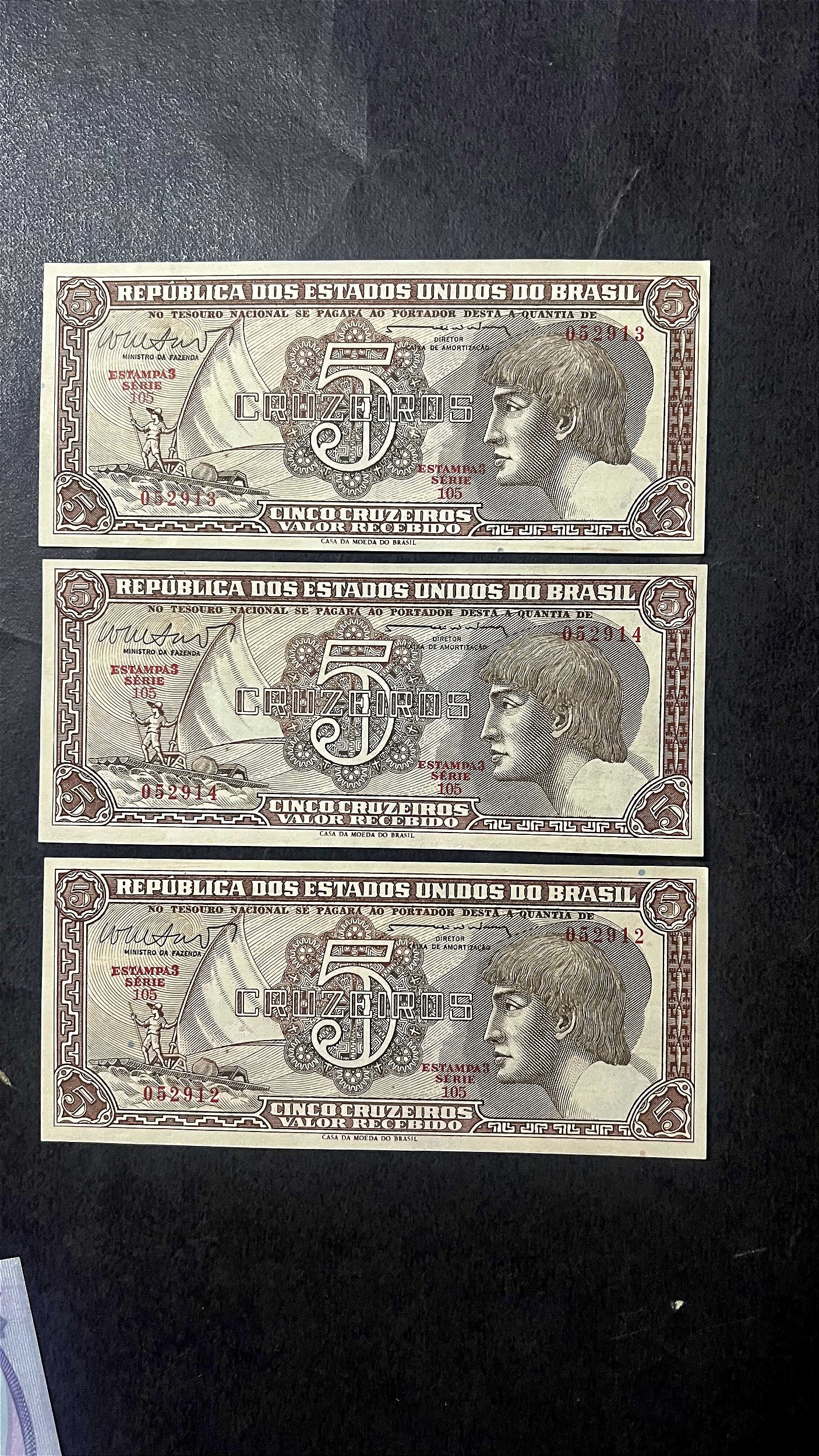 03 Cédulas do Brasil - Cinco Cruzeiros - Série 105 - Sob (ref.524)