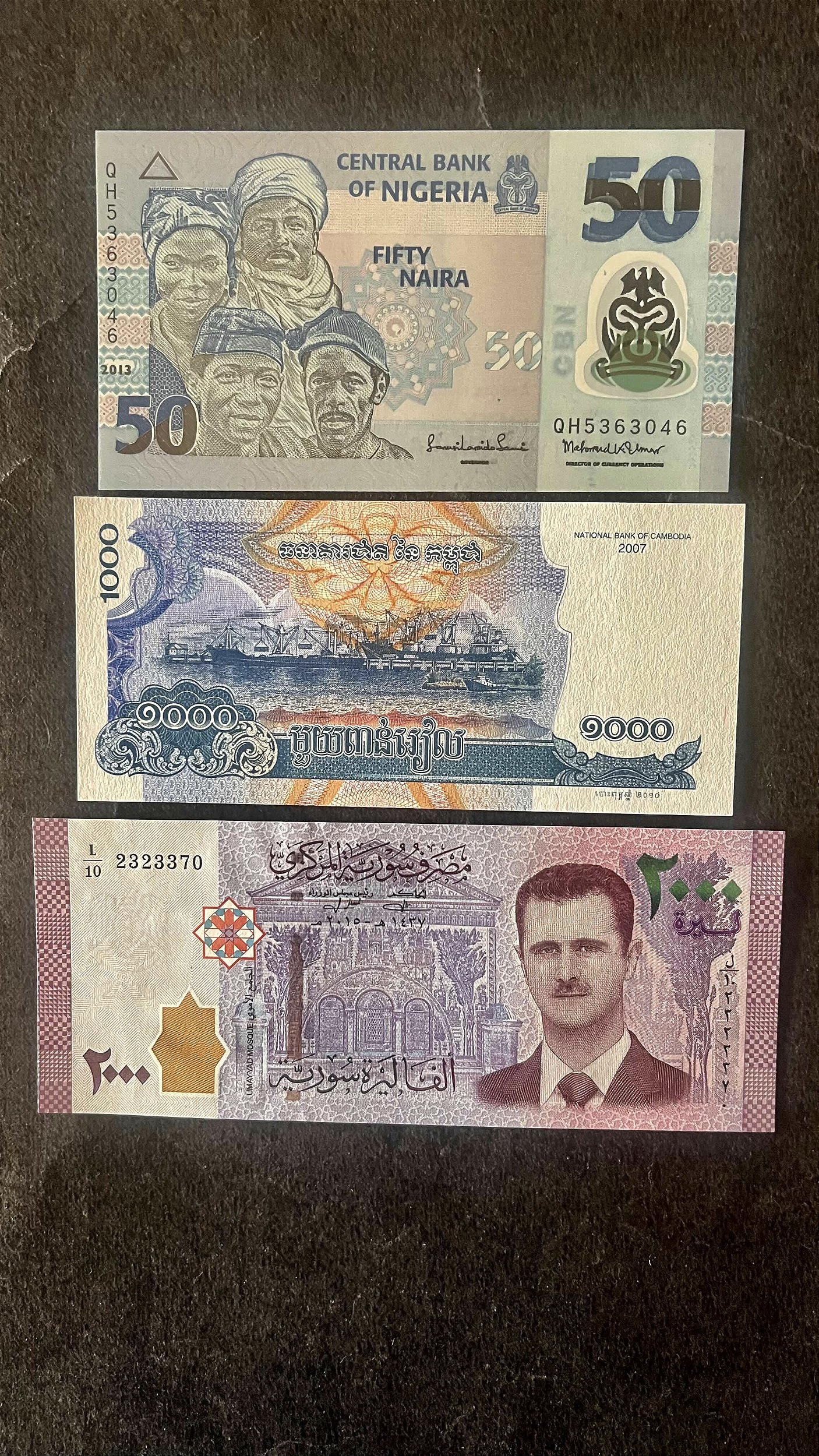 03 Cédulas Estrangeiras - Nigeria-Camboja-Siria- FE - ref.194