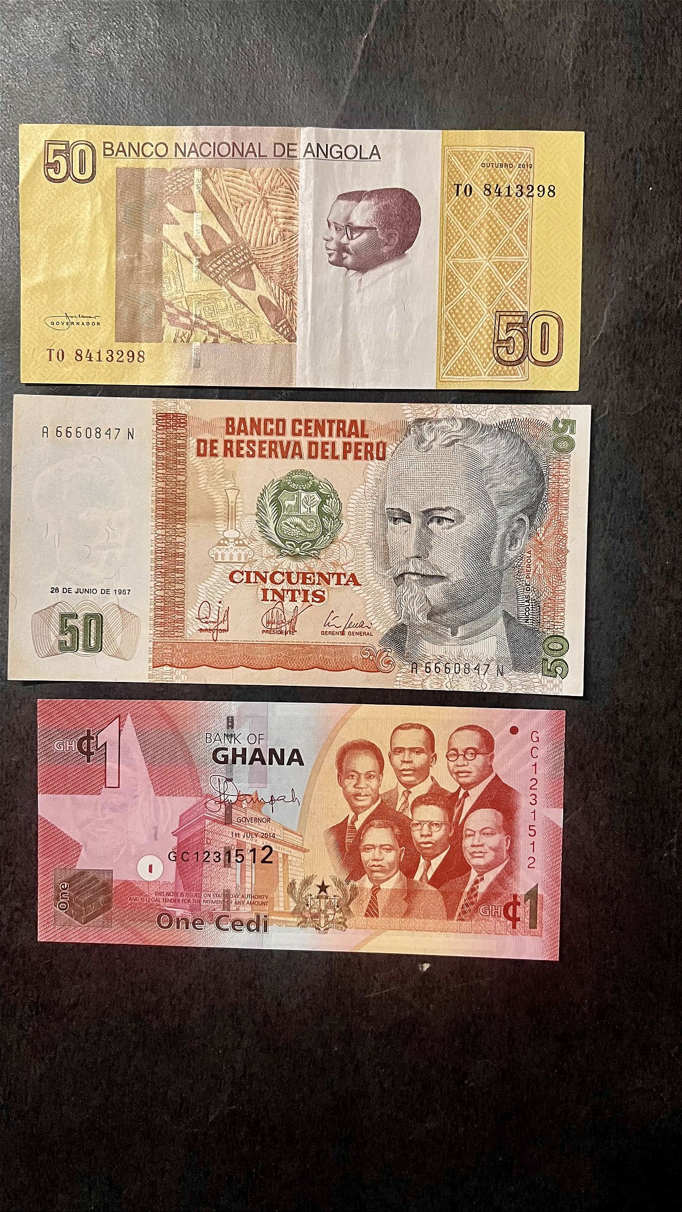 03 Cédulas Estrangeiras - Ghana - Angola - Peru - FE (ref.388)
