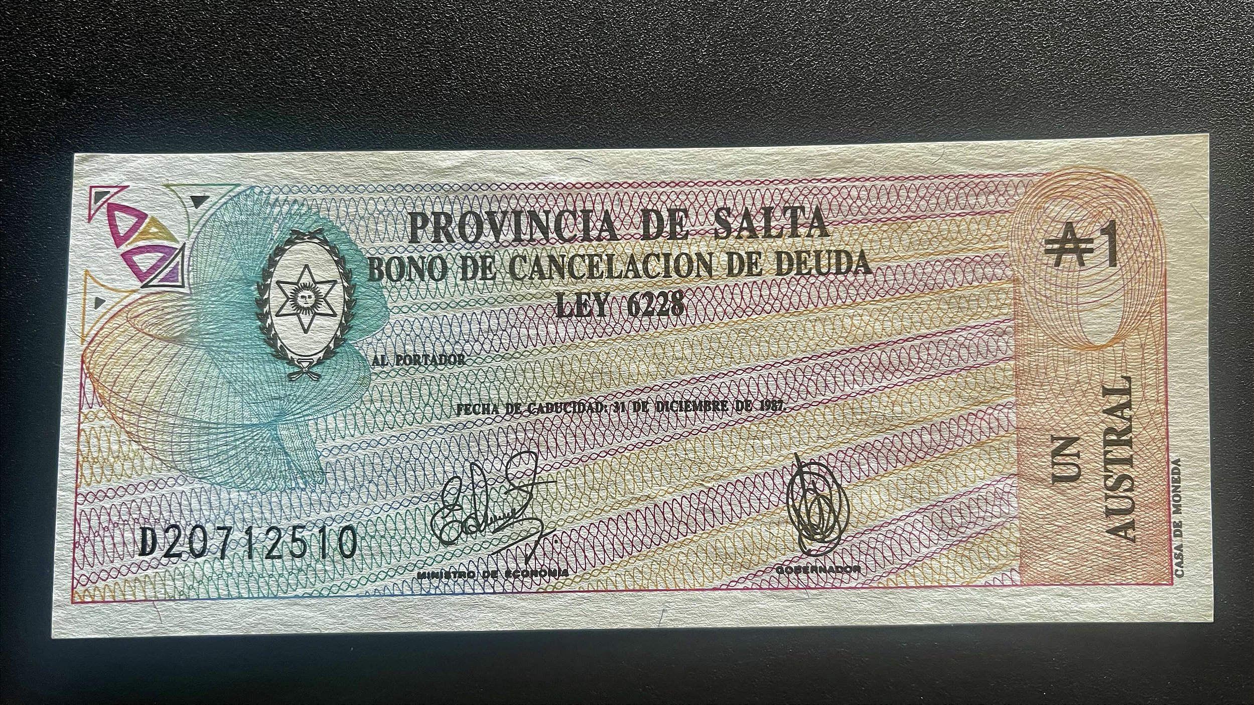 Bonus de Cancelamento de Divida - Provincia de Salta - Argentina - Un Austral - sob - ref.405