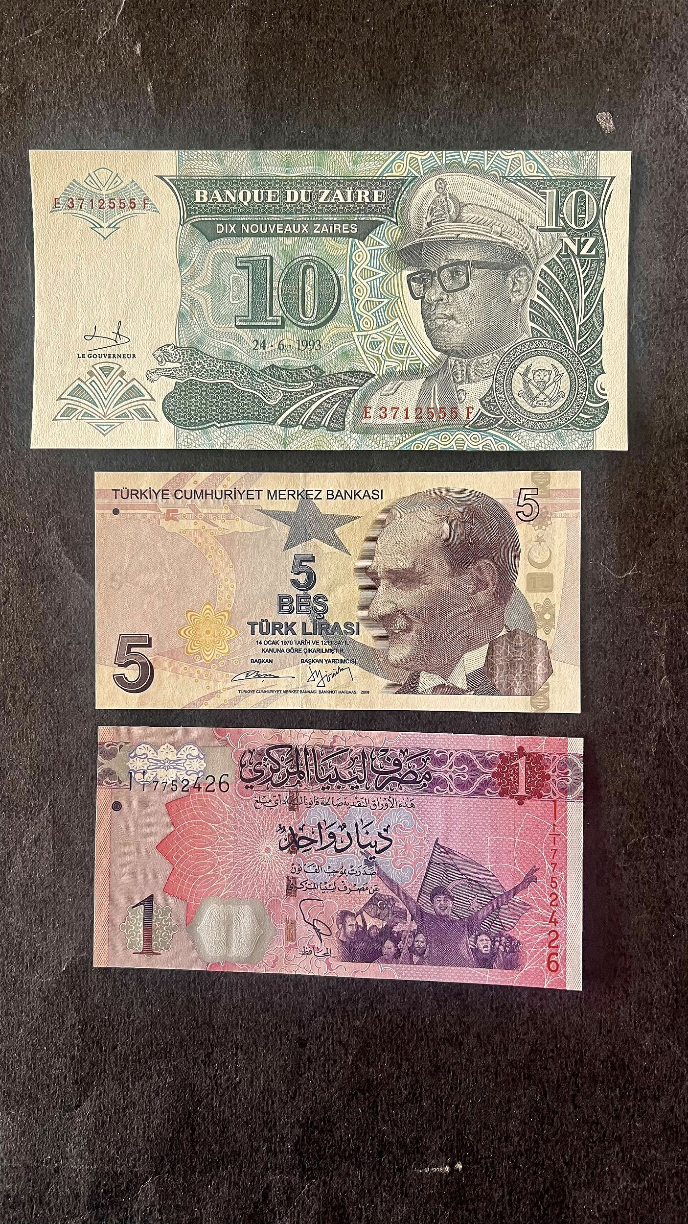 03 Cédulas Estrangeiras - Libia - Zaire - Turquia - FE (ref.586)
