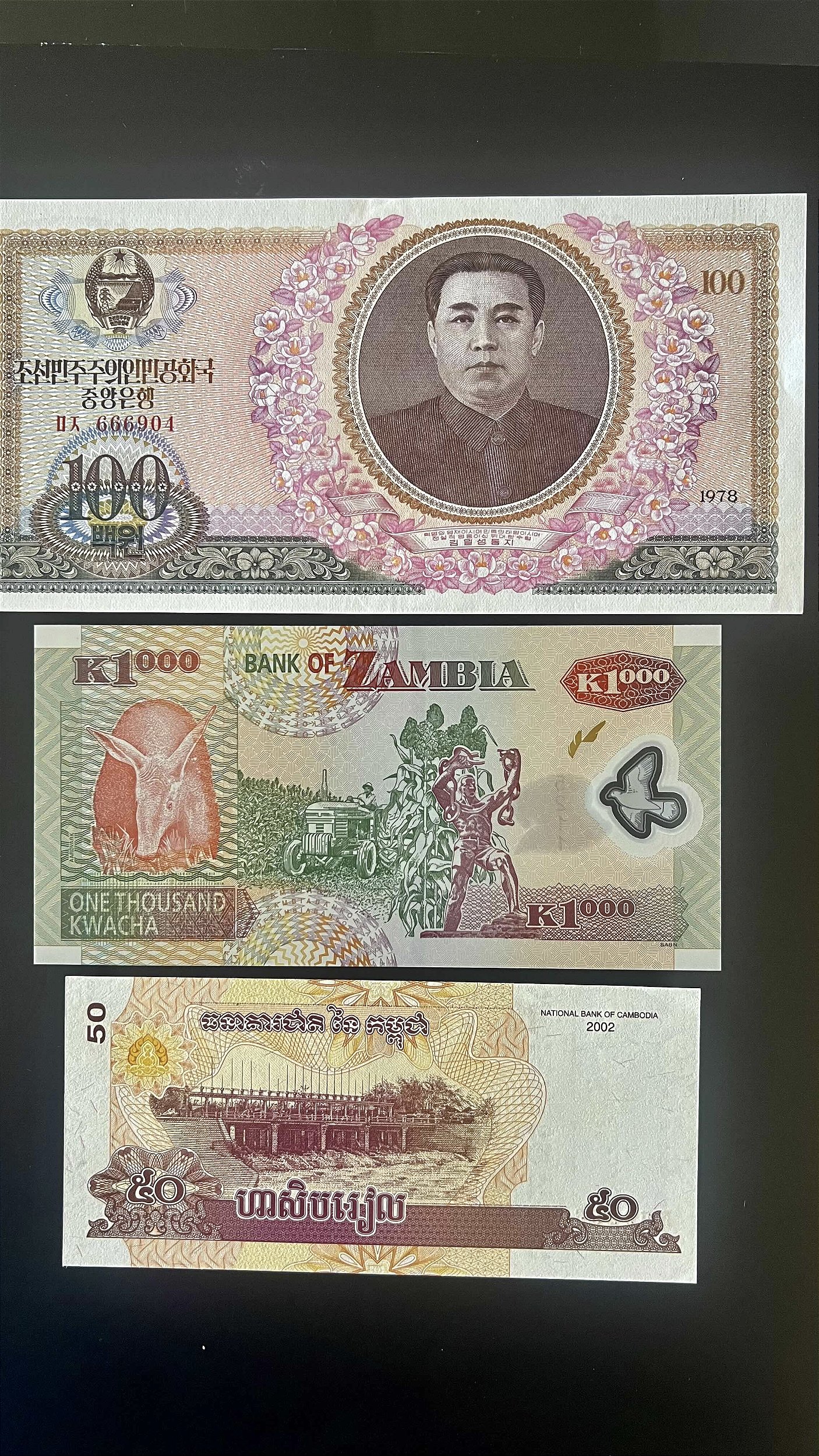 03 Cédulas Estrangeiras - Zambia - Camboja - Coreia do Norte - FE