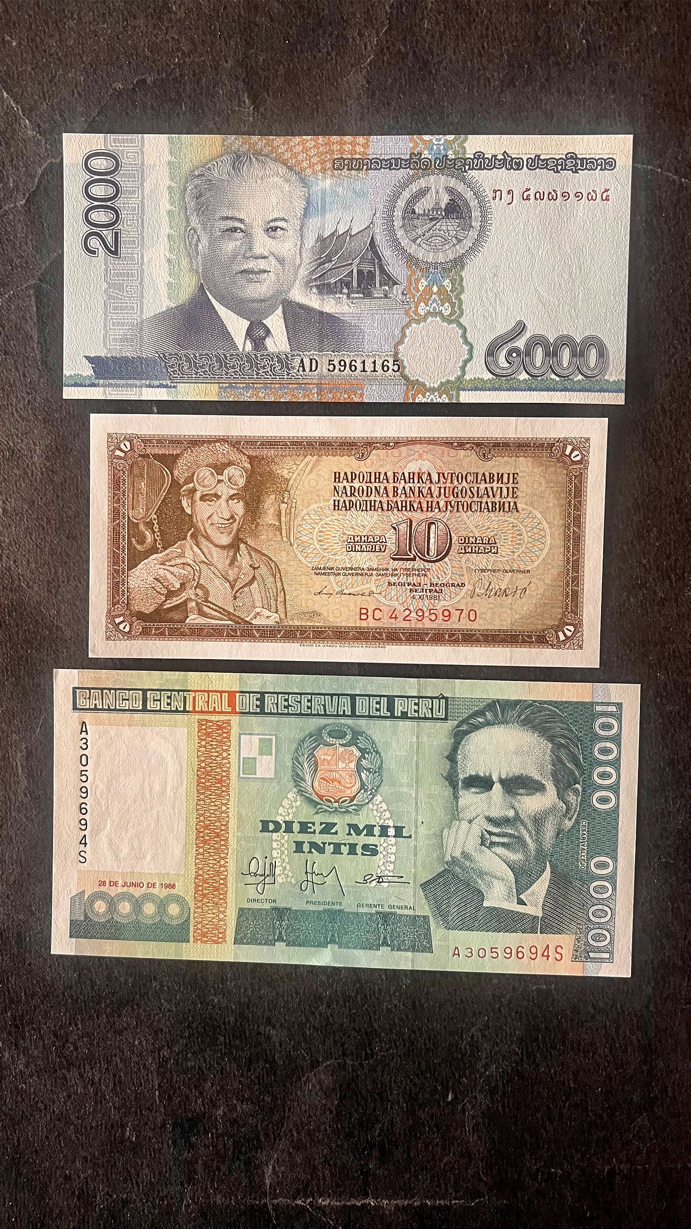 03 Cédulas Estrangeiras - Peru - Iugoslavia - Laos - FE (ref.395)