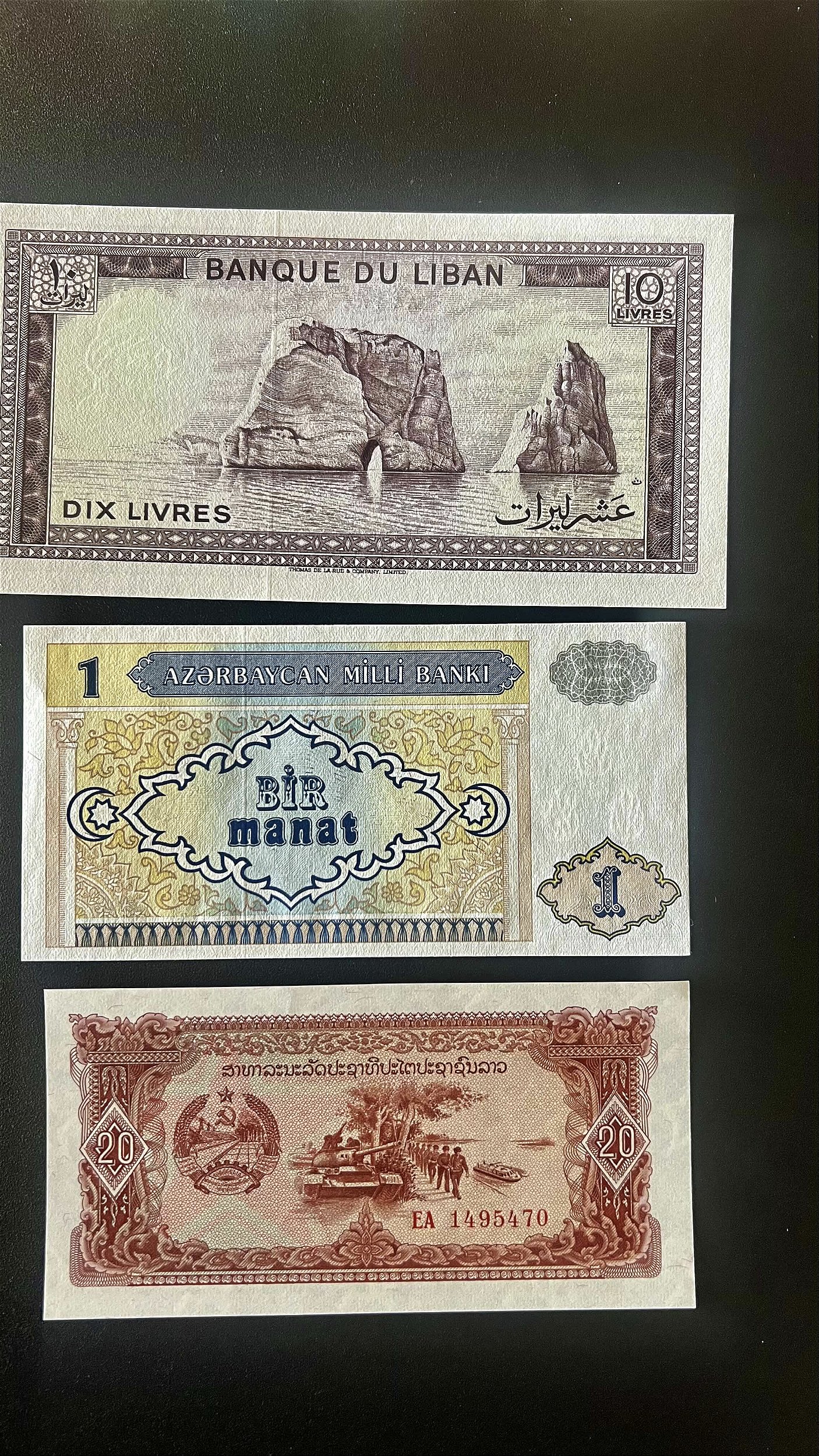 03 Cédulas Estrangeiras - Libano - Laos - Azerbaijão - FE - ref.395