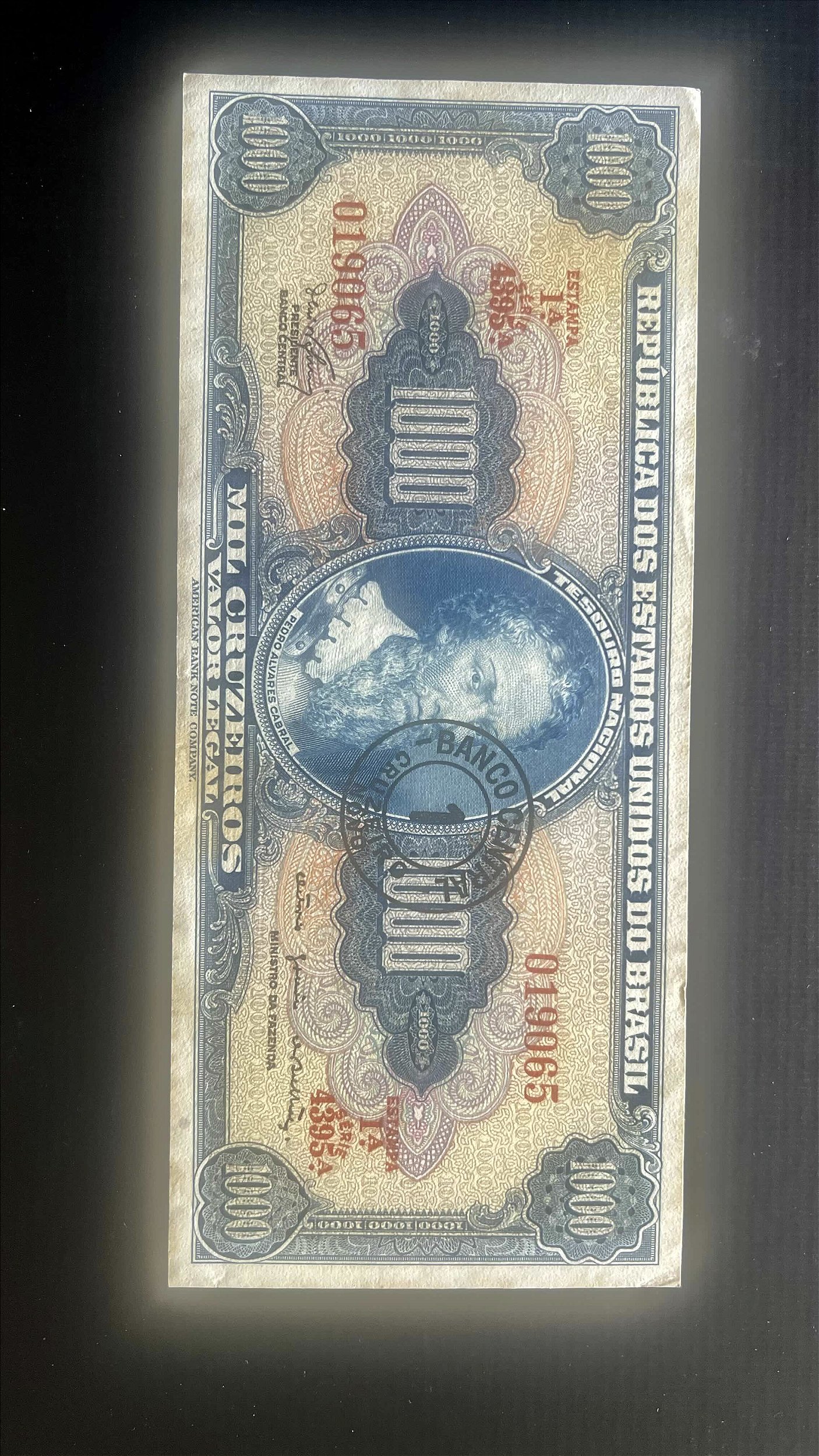 Cédula do Brasil - Mil Cruzeiros - carimbo de 1 Cruzeiro Novo - Sob - ref.199