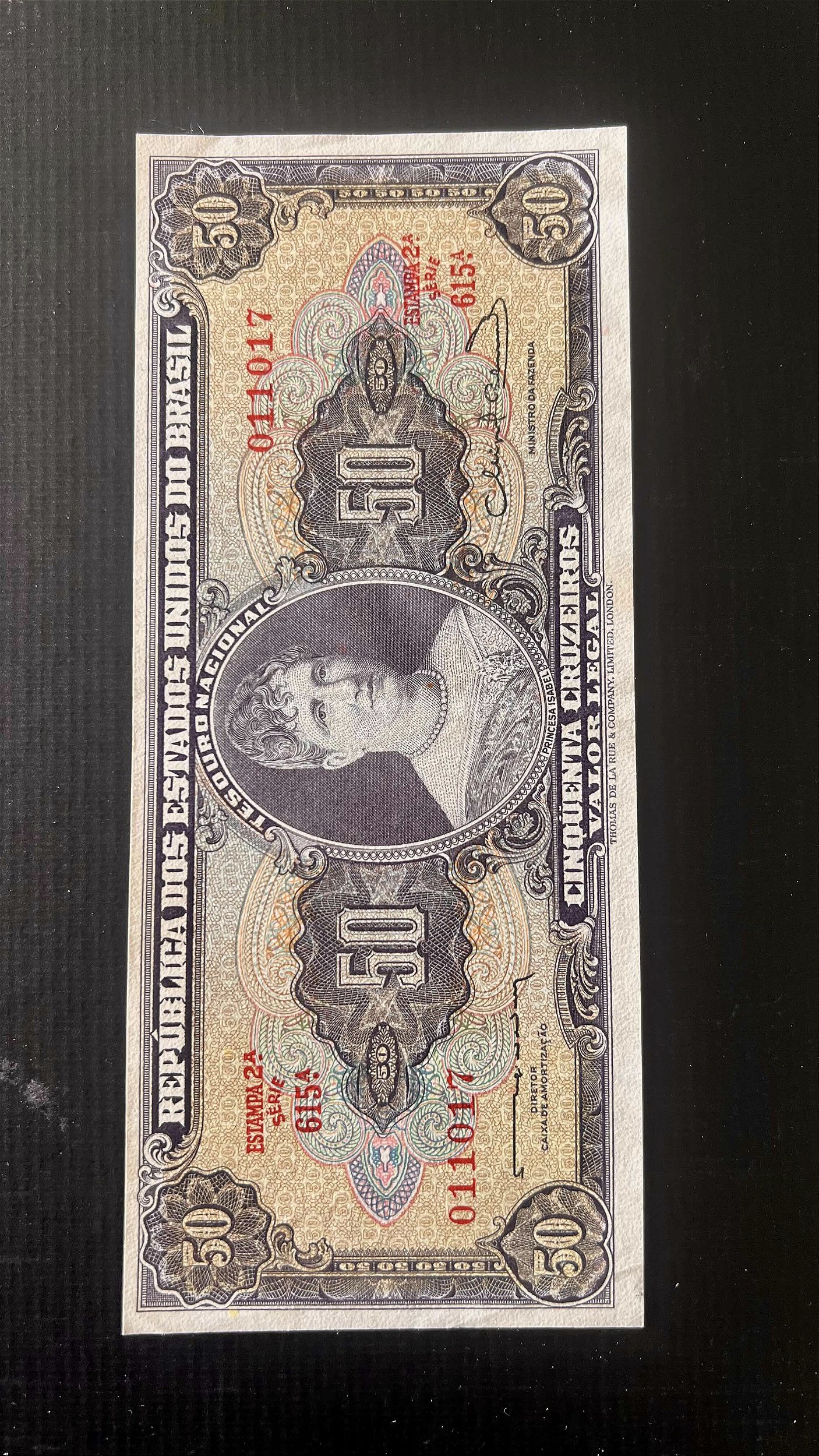Cedula do Brasil - Cinquenta Cruzeiros - Princesa Isabel - sob - ref.185
