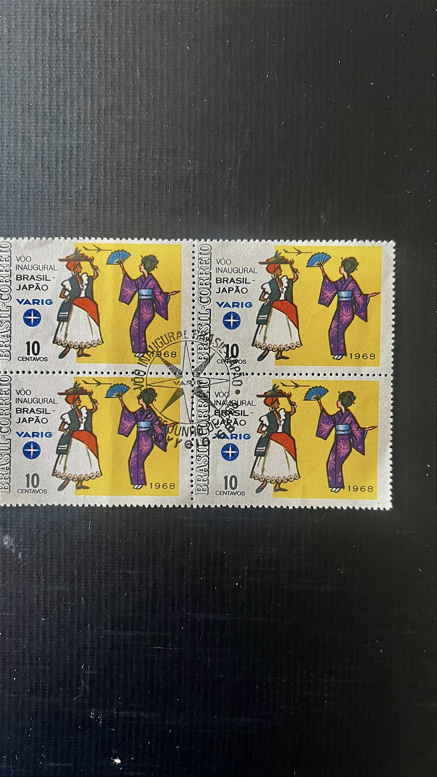 Quadra de Selos do Brasil - Voo Inaugural Brasil Japão - Varig - com carimbo comemorativo - ref.629