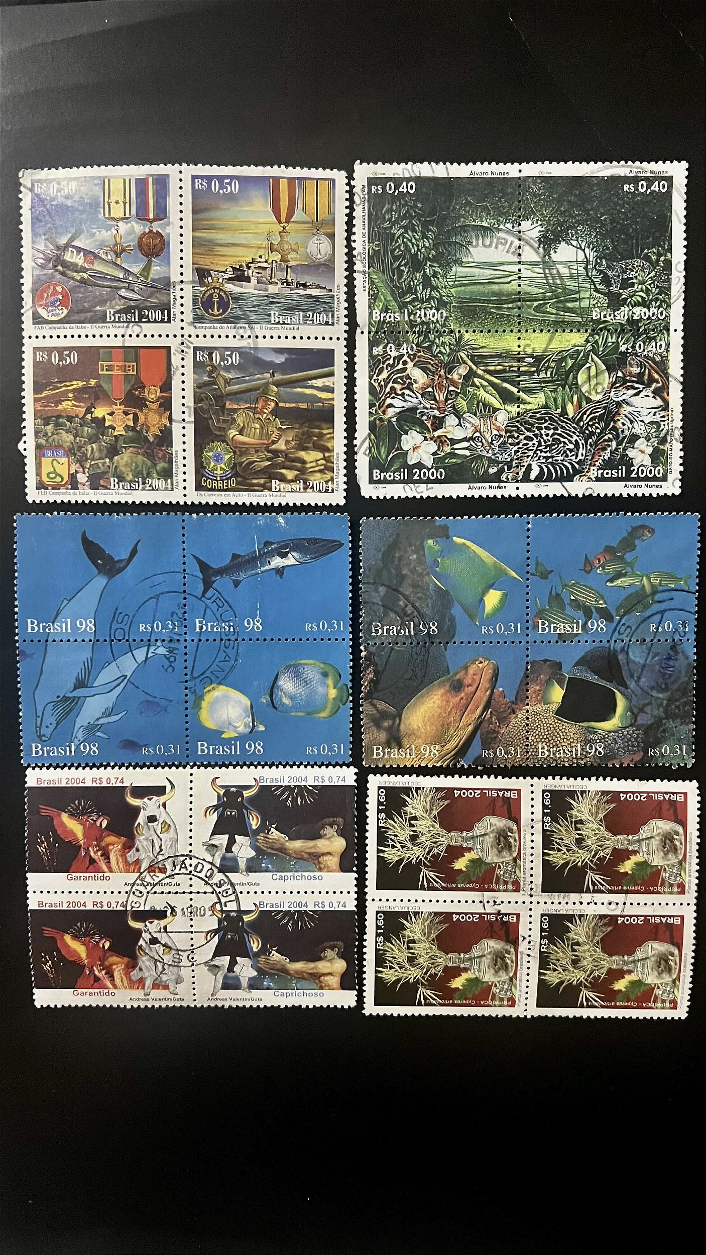 06 Quadras de Selos Comemorativos do Brasil - Circuladas com carimbo -ref.976