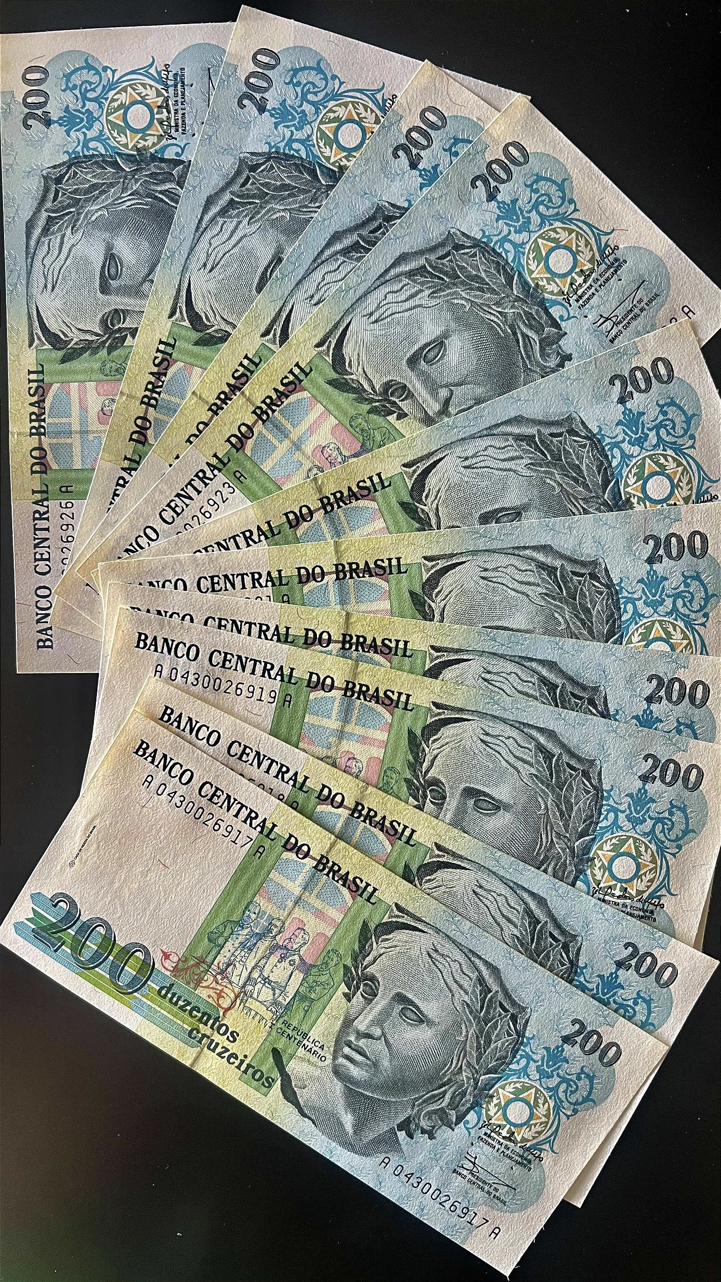 10 Cedulas de Duzentos Cruzeiros - Republica I Centenário - Sob-FE - ref.934
