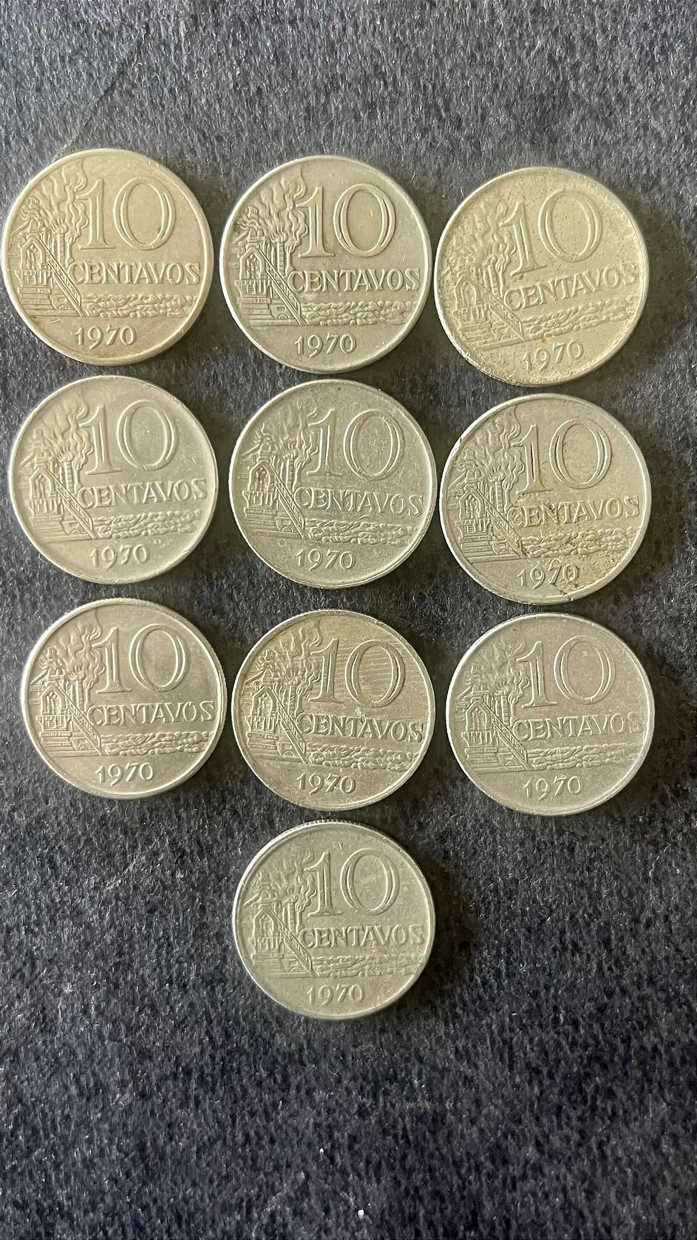 10 Moedas de Aço Inoxidável do Brasil - 10 Centavos - 1970 - Mbc - ref.908