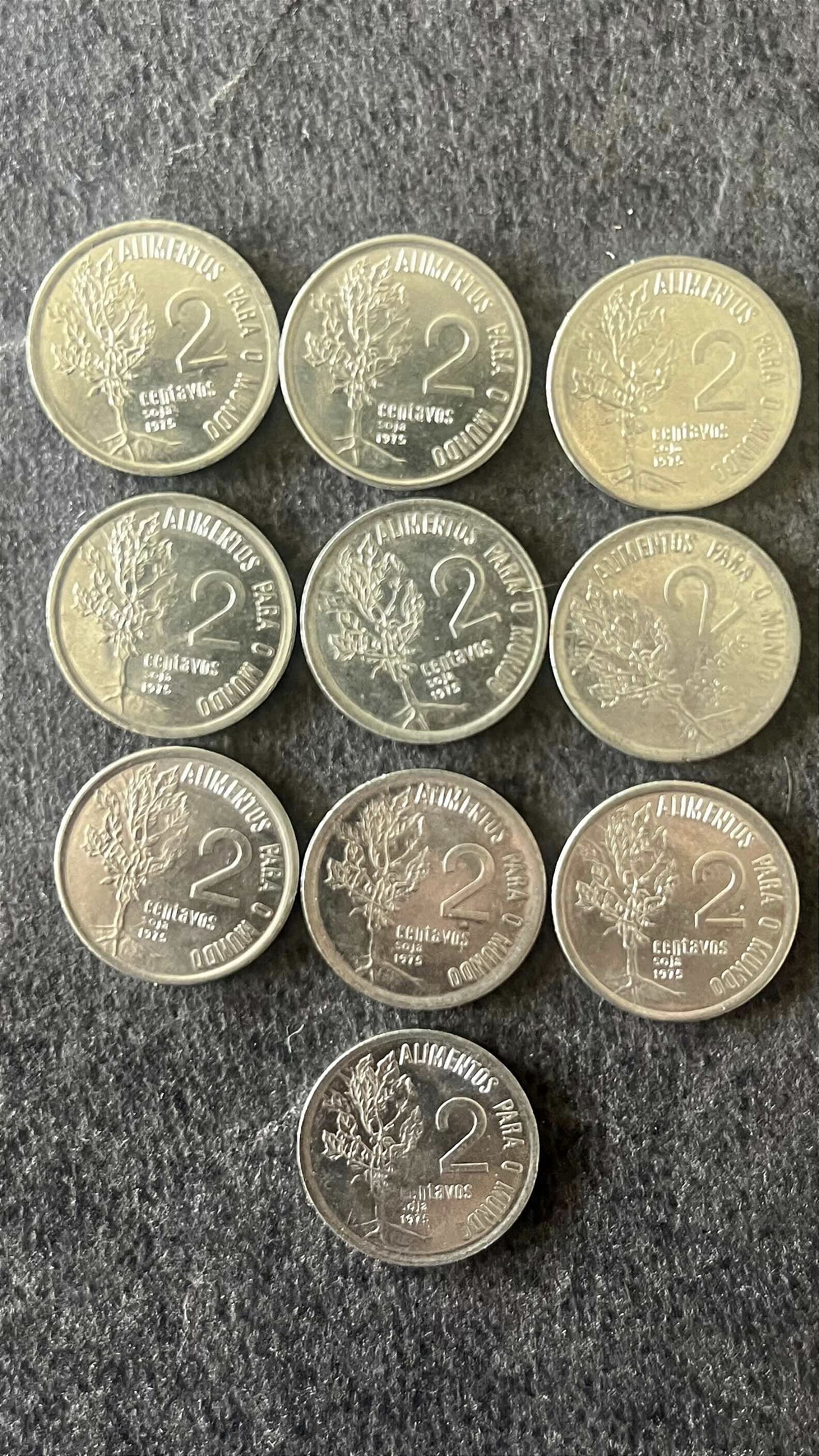 10 Moedas de Aço Inoxidável do Brasil - 2 Centavos - Série FAO - Soja - 1975 - Mbc - ref.920