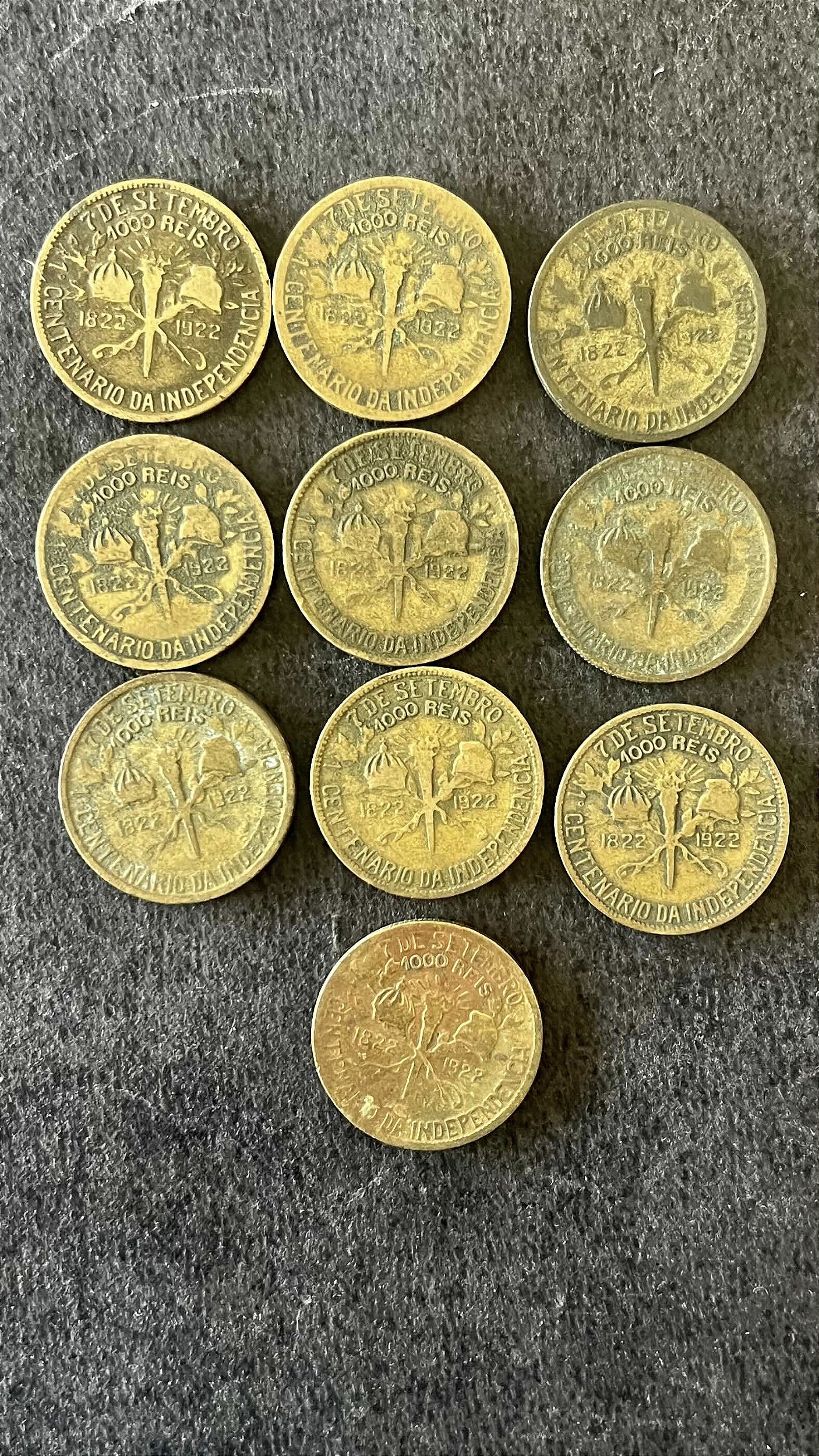 10 Moedas de Aluminio Bronze do Brasil - 1000 Réis - Centenário da Independencia do Brasil - 1922 - Mbc - ref.840