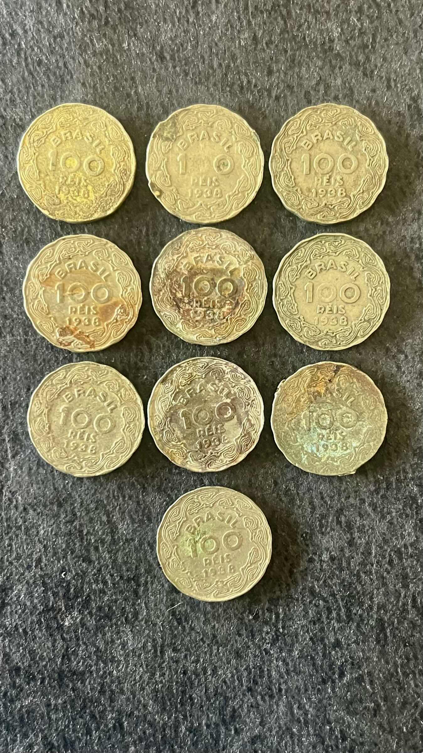 10 Moedas de Cupro Niquel do Brasil - 100 Réis - Getulio Vargas - 1938 - Mbc - ref.845