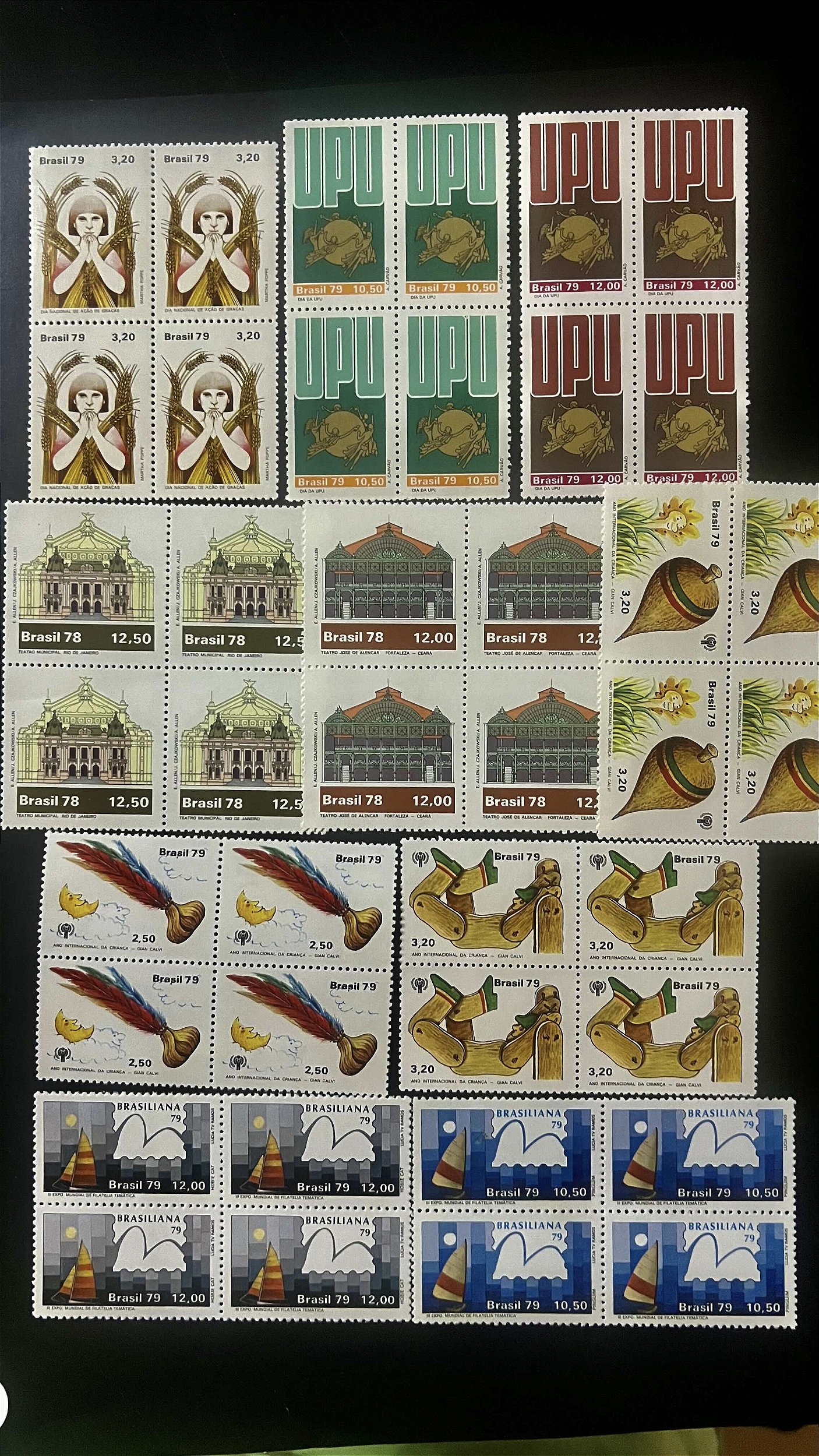 10 Quadras de Selos Comemorativos do Brasil - 1978 - 1979 - Mint - ref.246