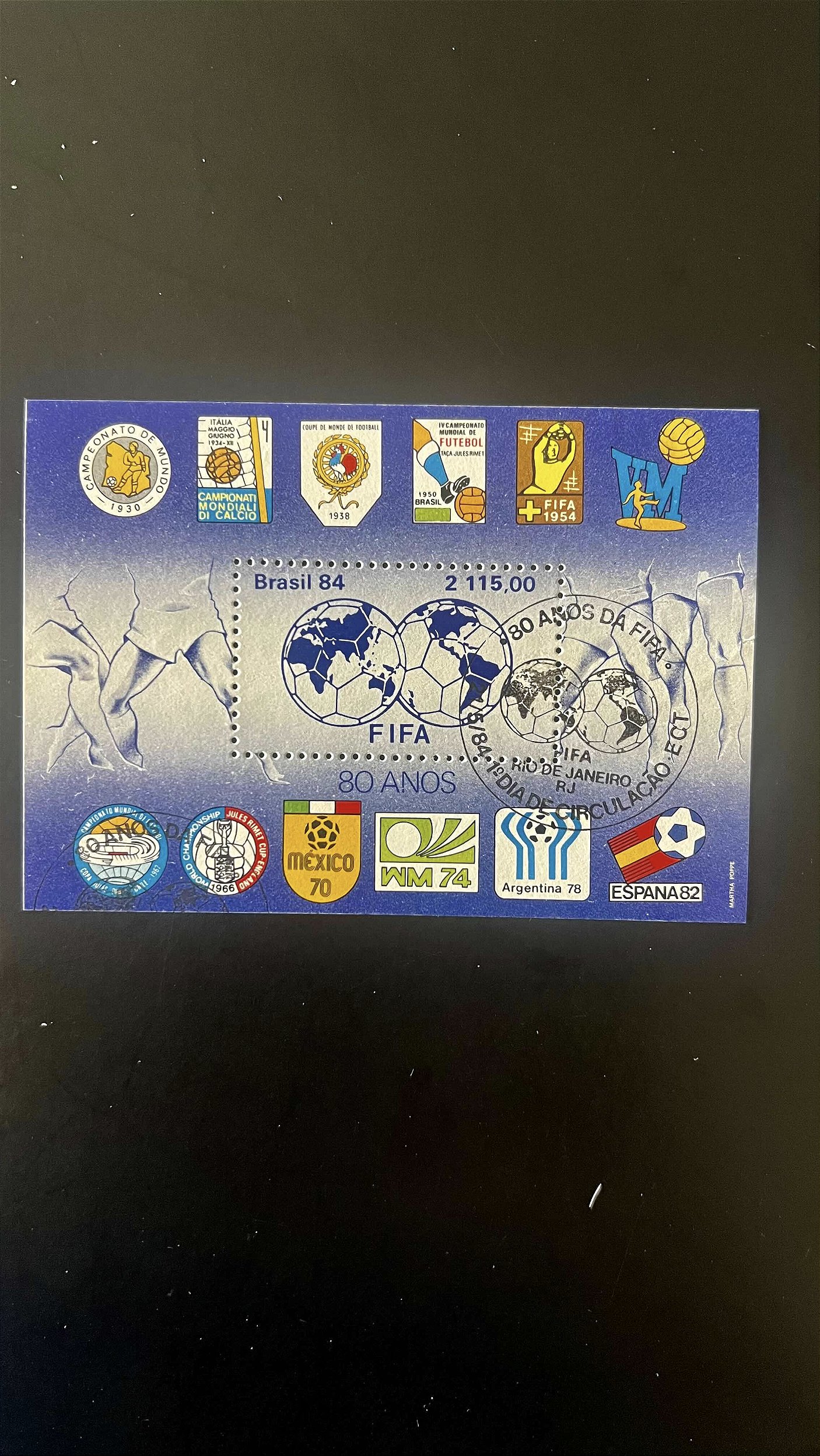 Bloco de Selos do Brasil - Fifa 80 Anos - com carimbo comemorativo - 1984 - ref.1015