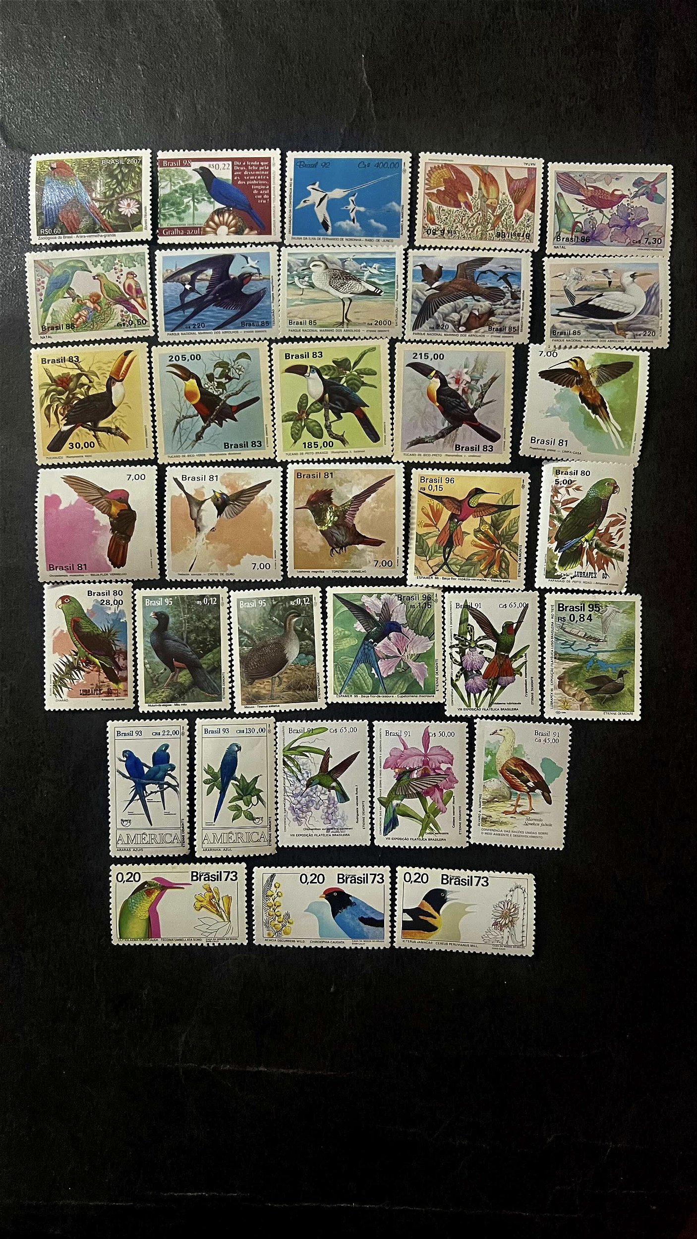 34 Selos Comemorativos do Brasil - Temáticos - Aves - Mint - ref.709