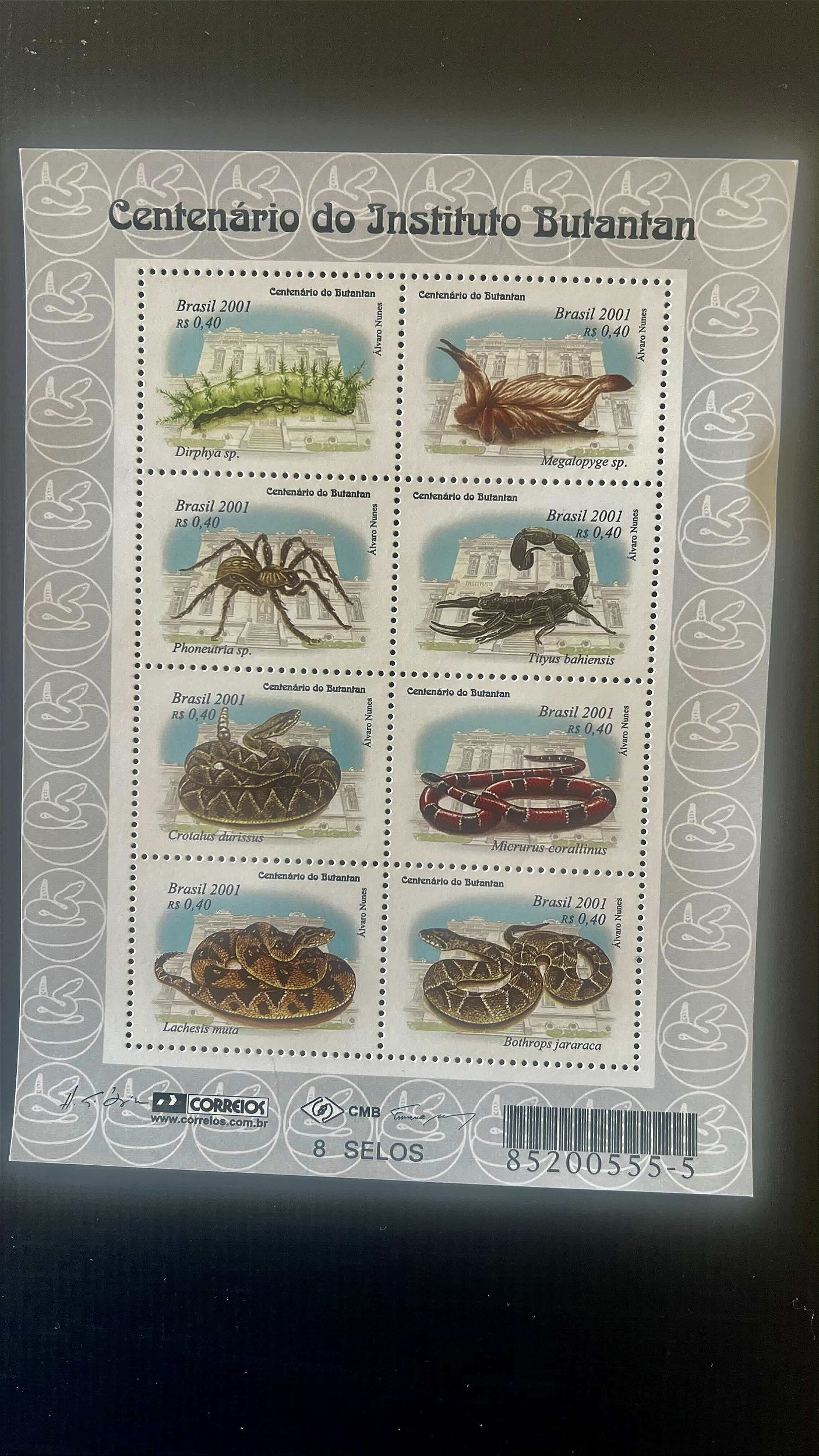 Bloco de Selos do Brasil - Centenário do Instituto Butantan - 2001 - Mint - ref.473