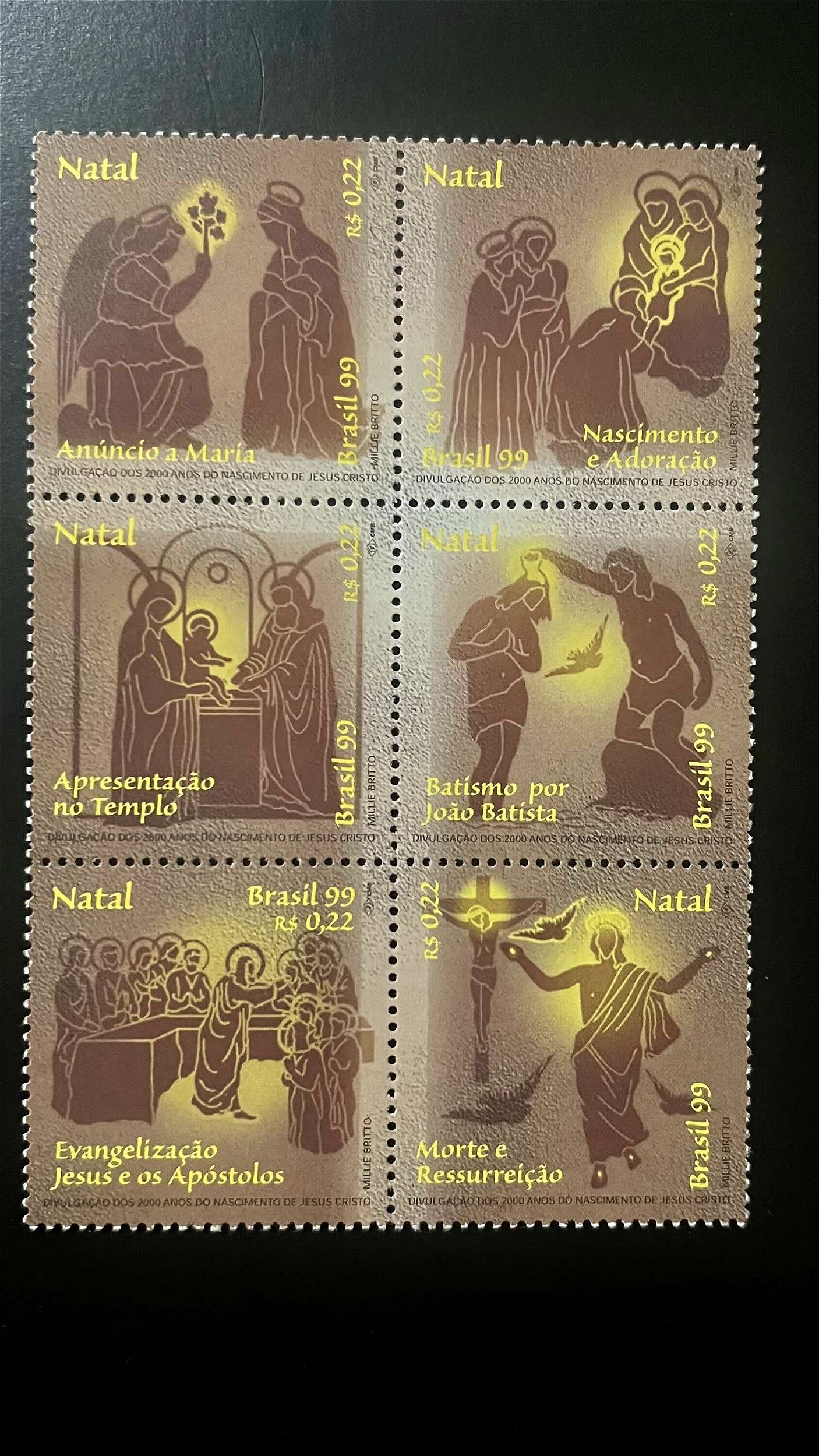 Sextilha de Selos Comemorativos do Brasil - Natal 1999 - 2000 Anos de Jesus Cristo - Mint - ref.509