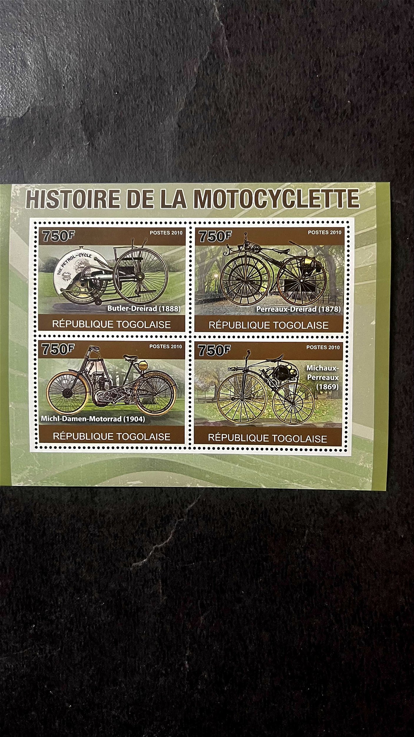 Bloco de Selos da Republique Togolaise - Histoire de La Motocyclette - Mint - ref.722