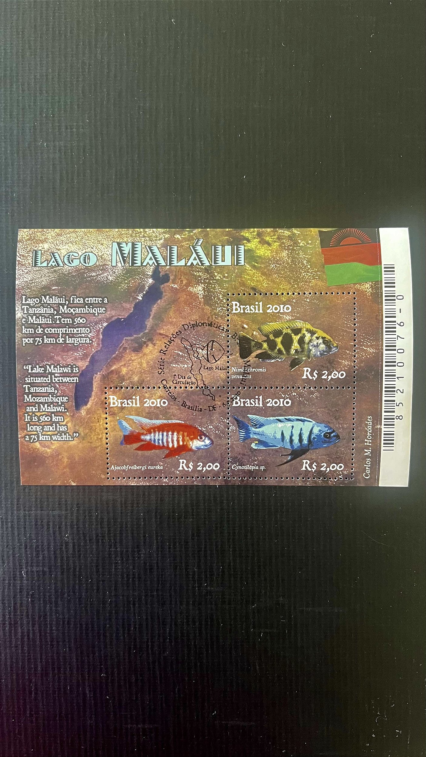 Bloco de Selos Comemorativos do Brasil - Lago Malaui - 2010 - mint - ref.808