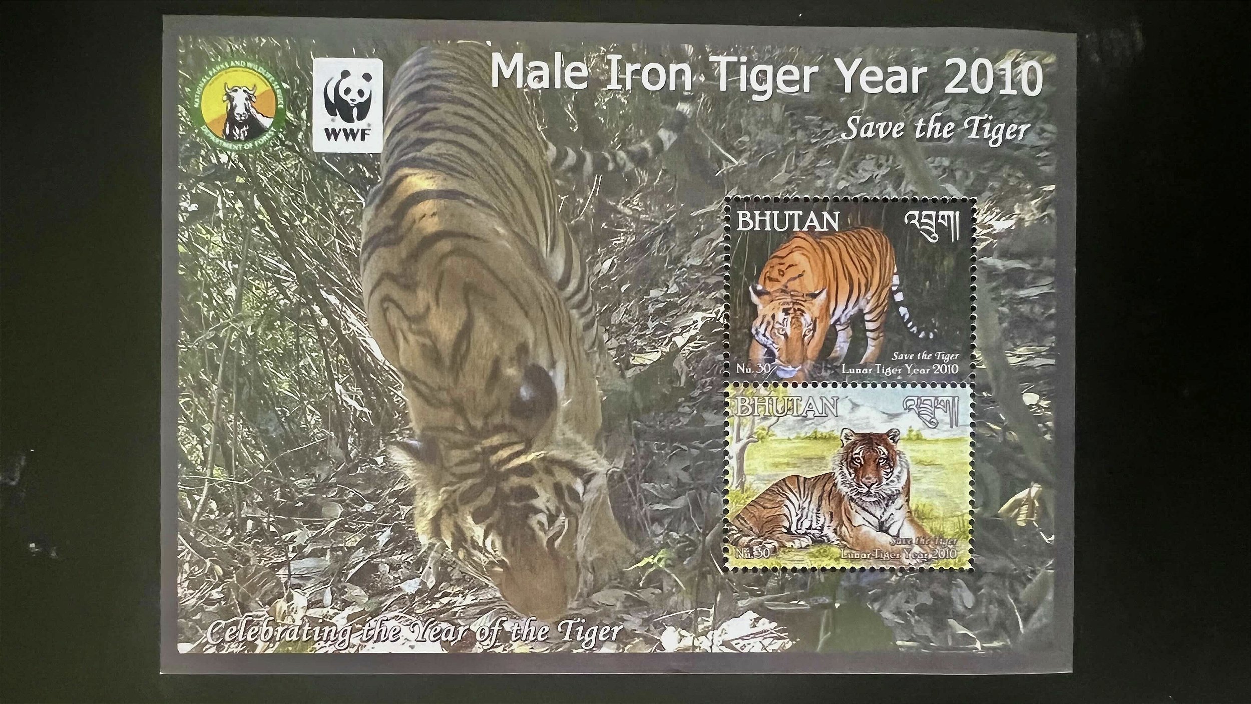 Bloco de Selos Estrangeiros - Bhutan - Male Iron Tiger Year 2010 - Tematico - Fauna - Mint - ref.996