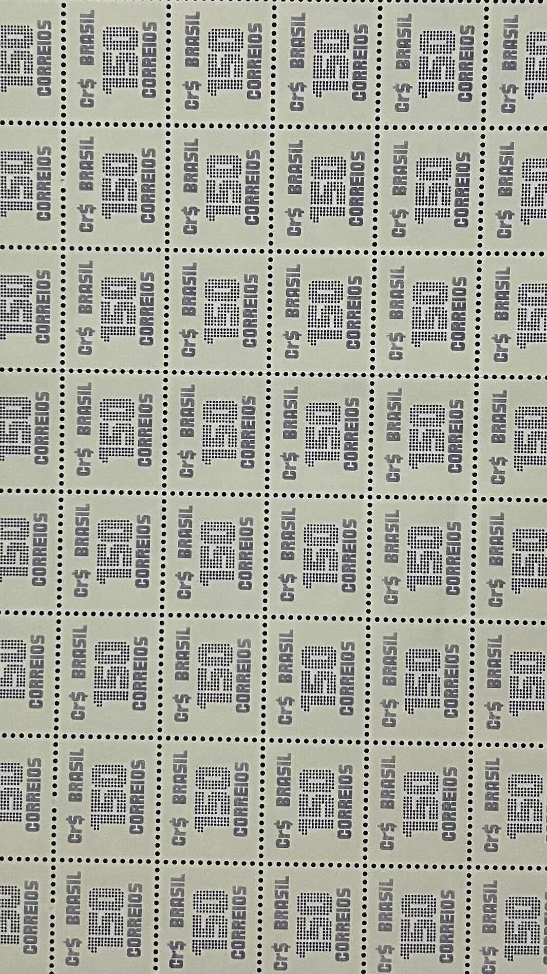 Folha Completa de 110 Selos Regulares do Brasil - CR$.150,00 - Mint - ref.1061 - folha irá dobrada