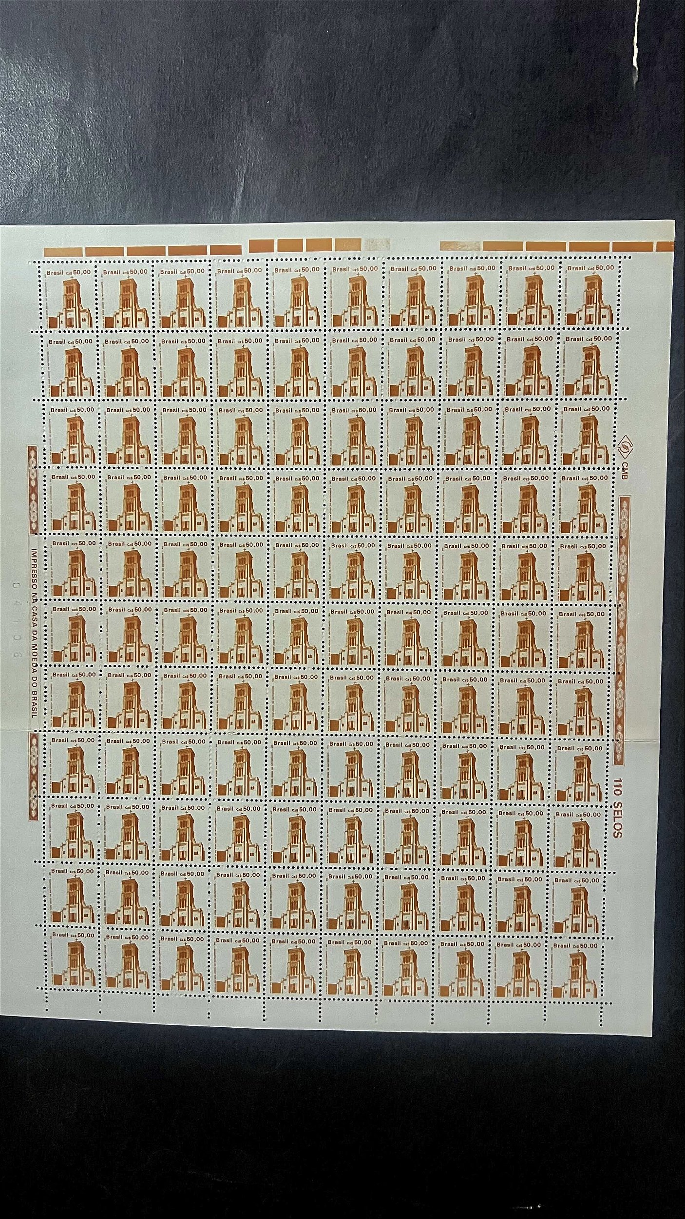 Folha Completa de 110 Selos Regulares do Brasil - CR$.50,00 - Igreja de Matosinhos - Mint - ref.1067 - folha irá dobrada