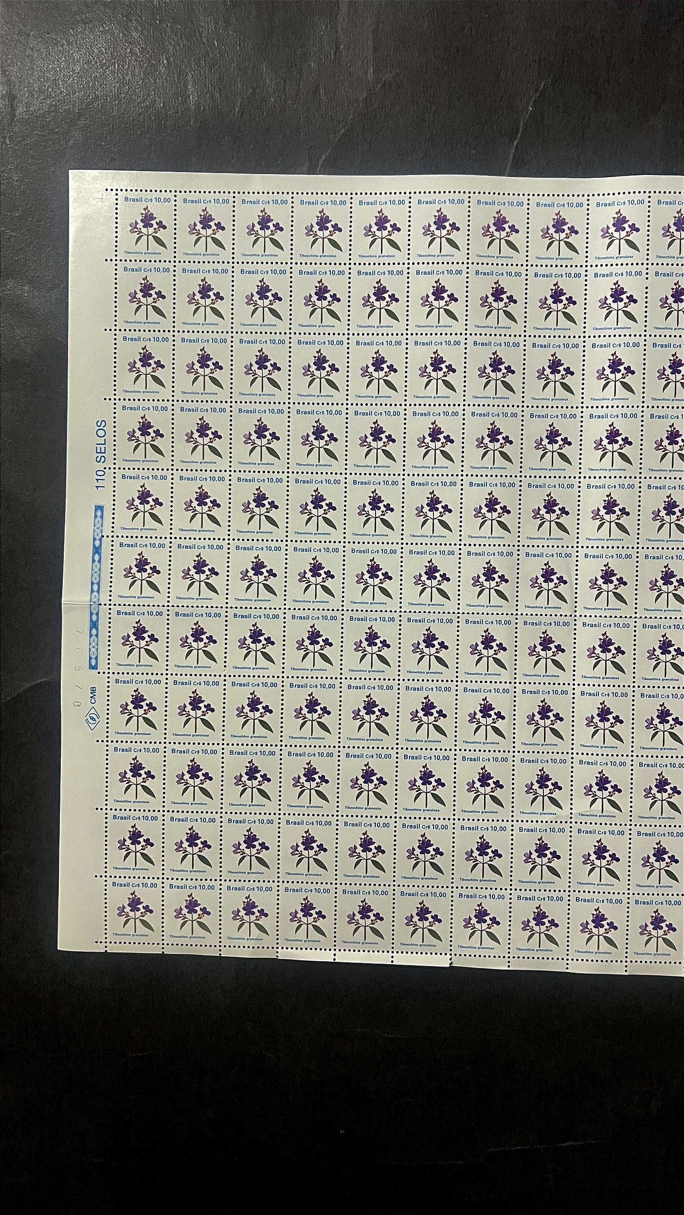 Folha Completa de 110 Selos Regulares do Brasil - NCR$.0,10 - Flores - Mint - ref.1057
