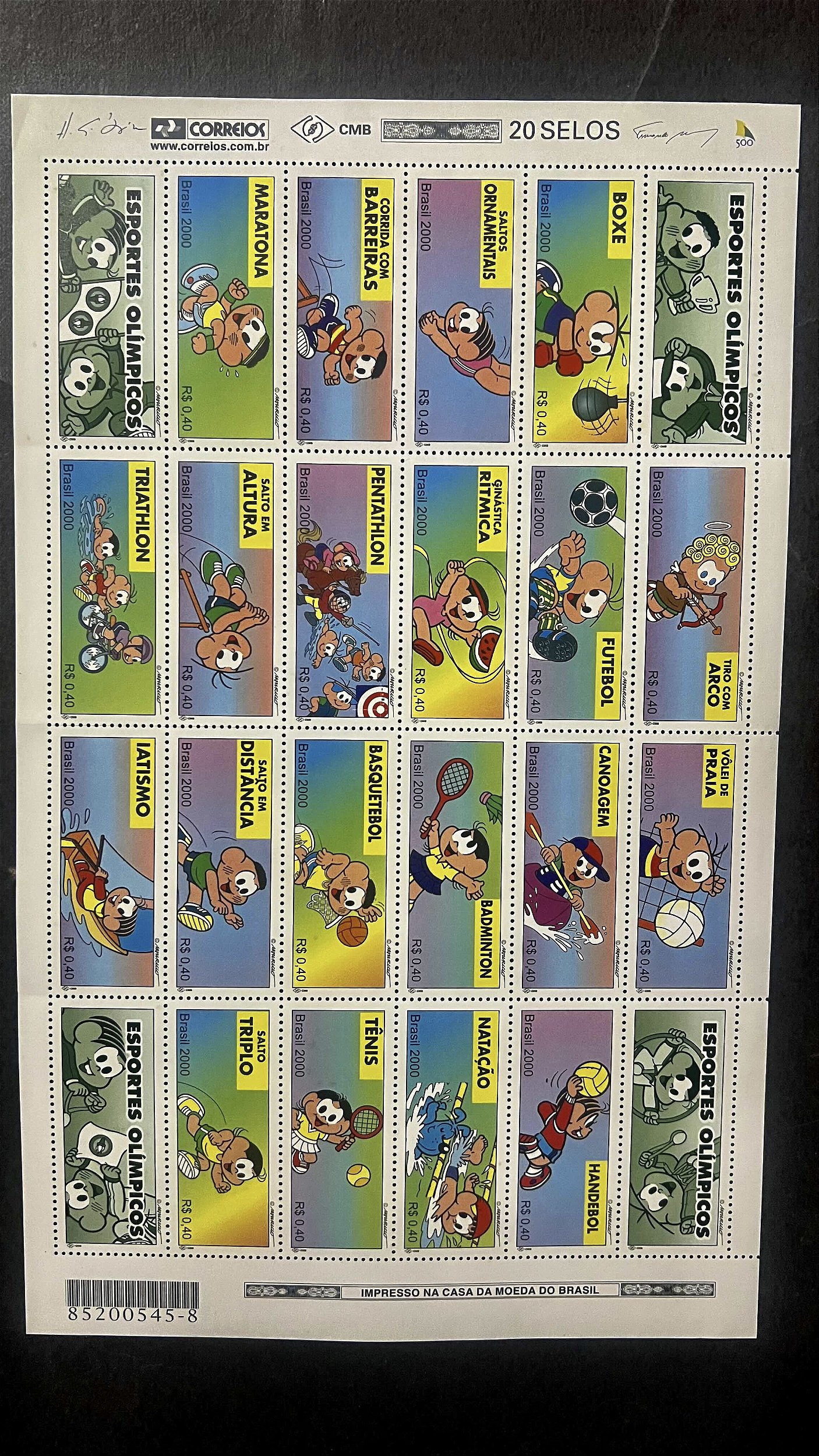 Folha Completa de Selos do Brasil - Esportes Olimpicos - Turma da Monica - 2000 - Mint - ref.1050
