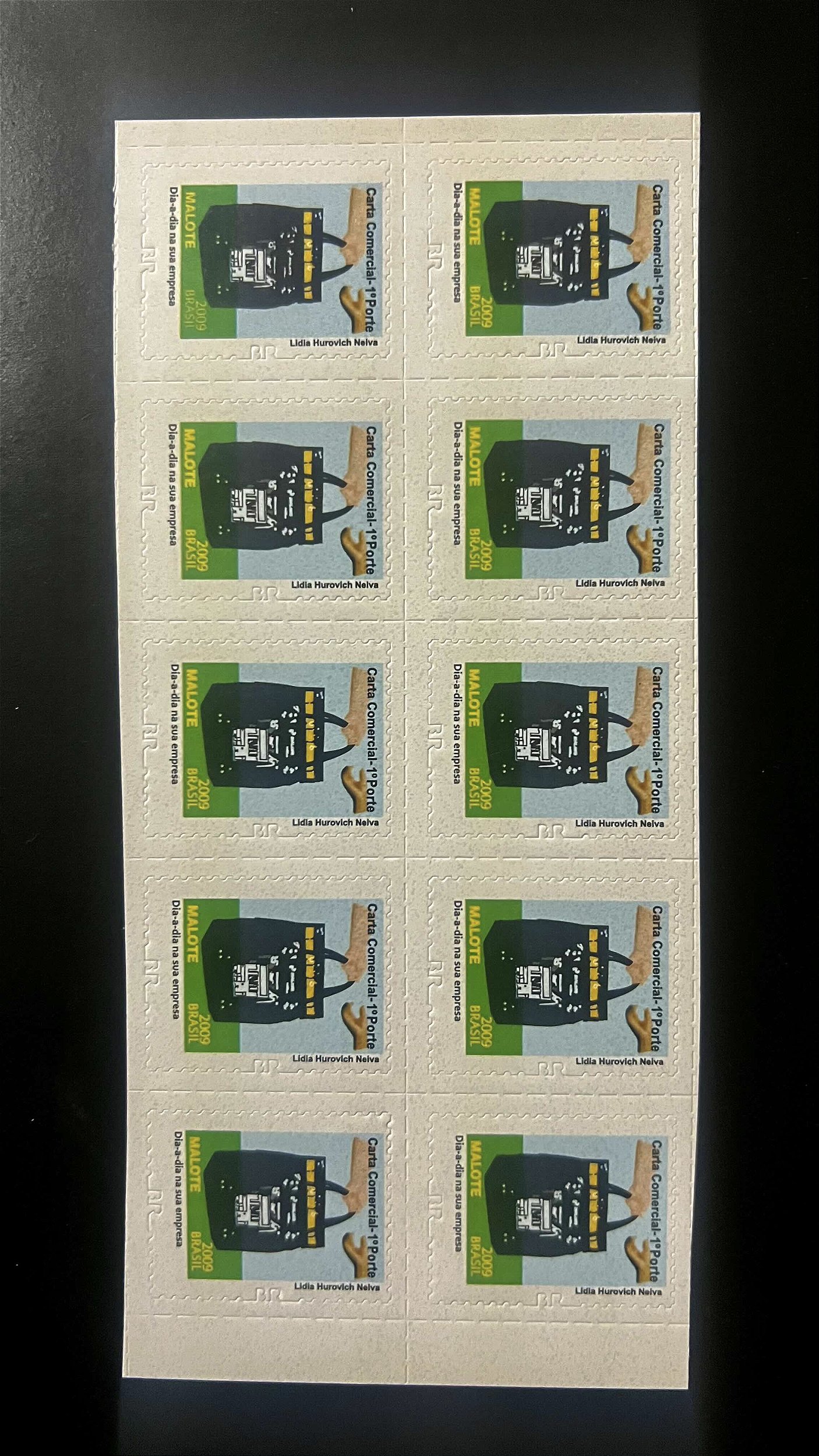 Cartela de 10 Selos Regulares do Brasil - Adesivos - Malote - 2009 - Mint - ref.284