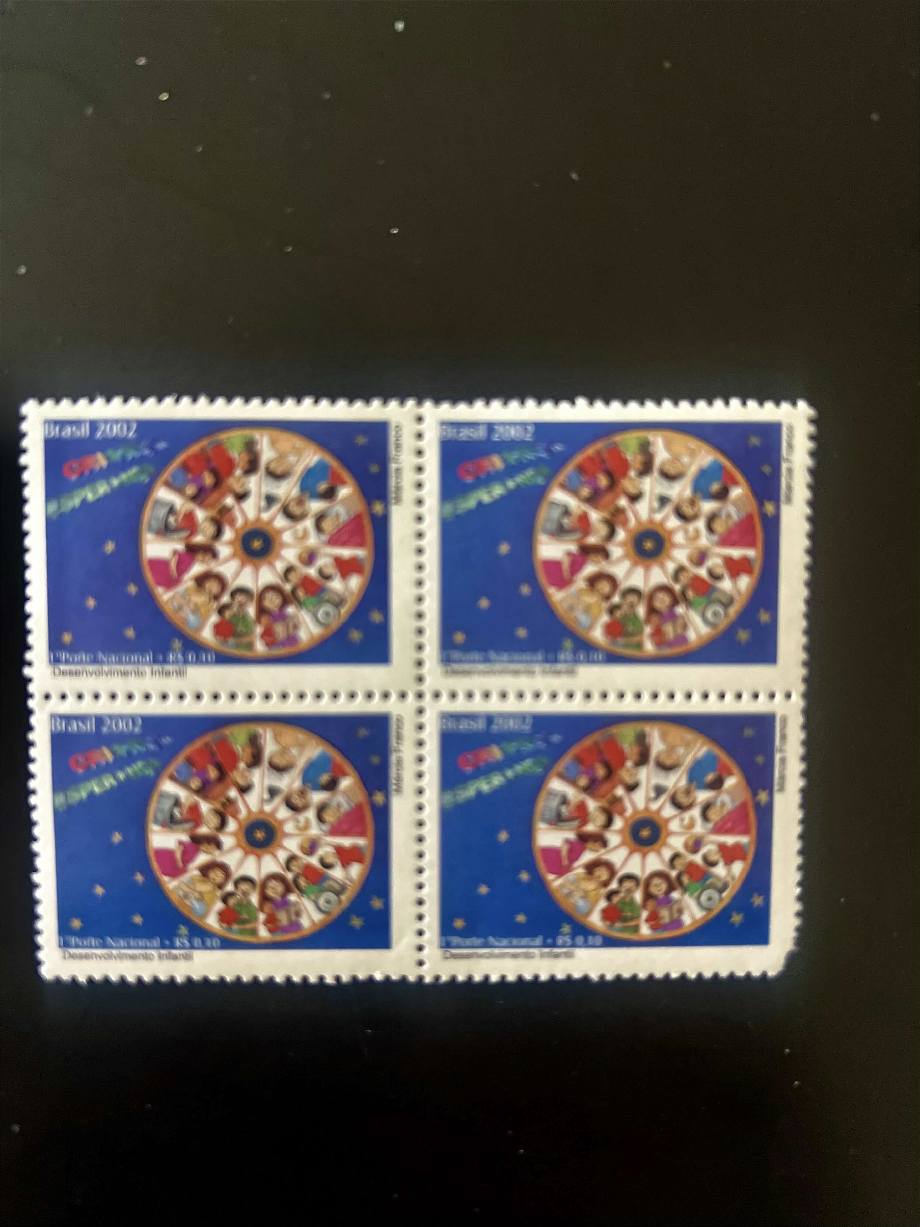 Quadra de Selos do Brasil - Desenvolvimento Infantil - 2002 - Mint - ref.2025