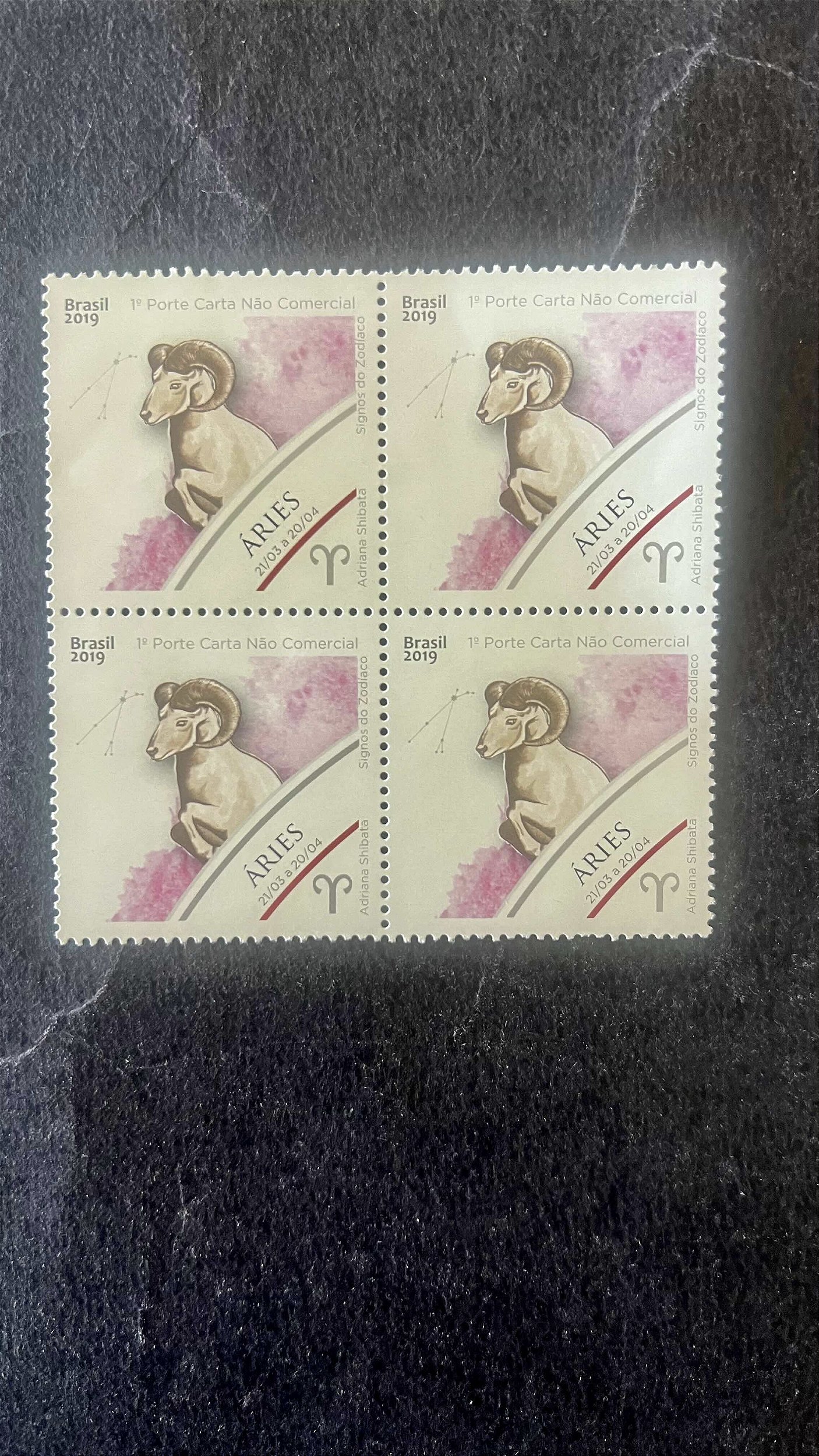 Quadra de Selos do Brasil - Signos do Zodiaco - Aries - Brasil 2019 - Mint - ref.767