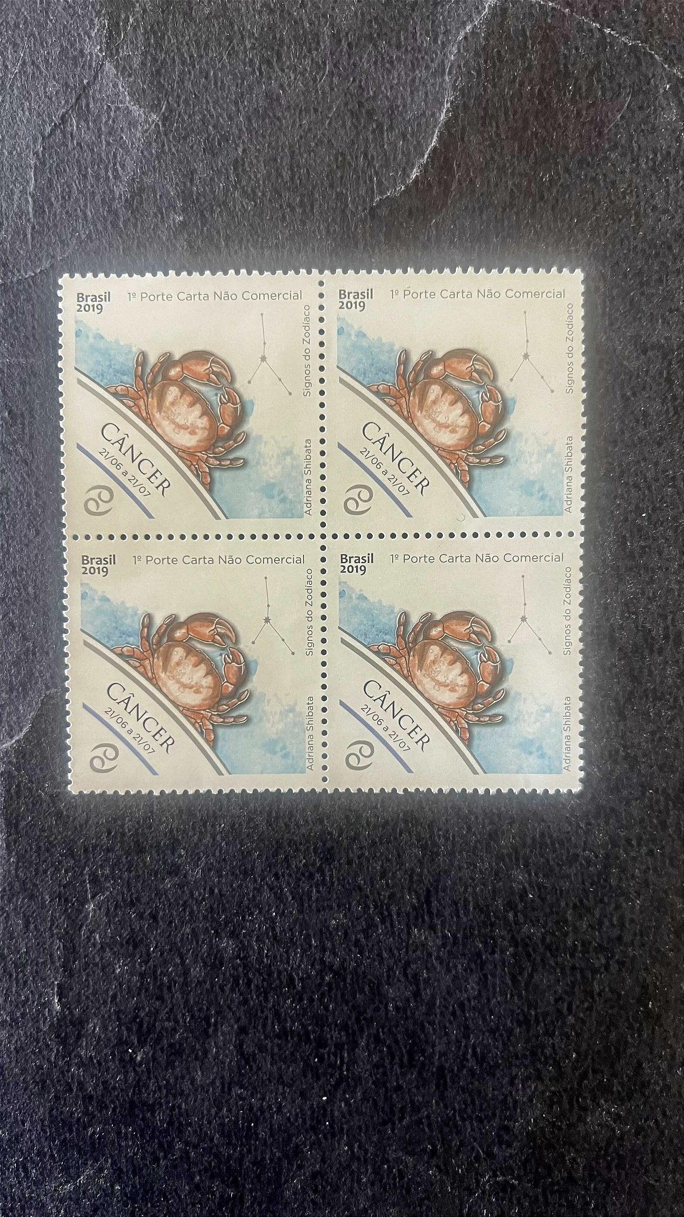 Quadra de Selos do Brasil - Signos do Zodiaco - Cancer - Brasil 2019 - Mint - ref.762
