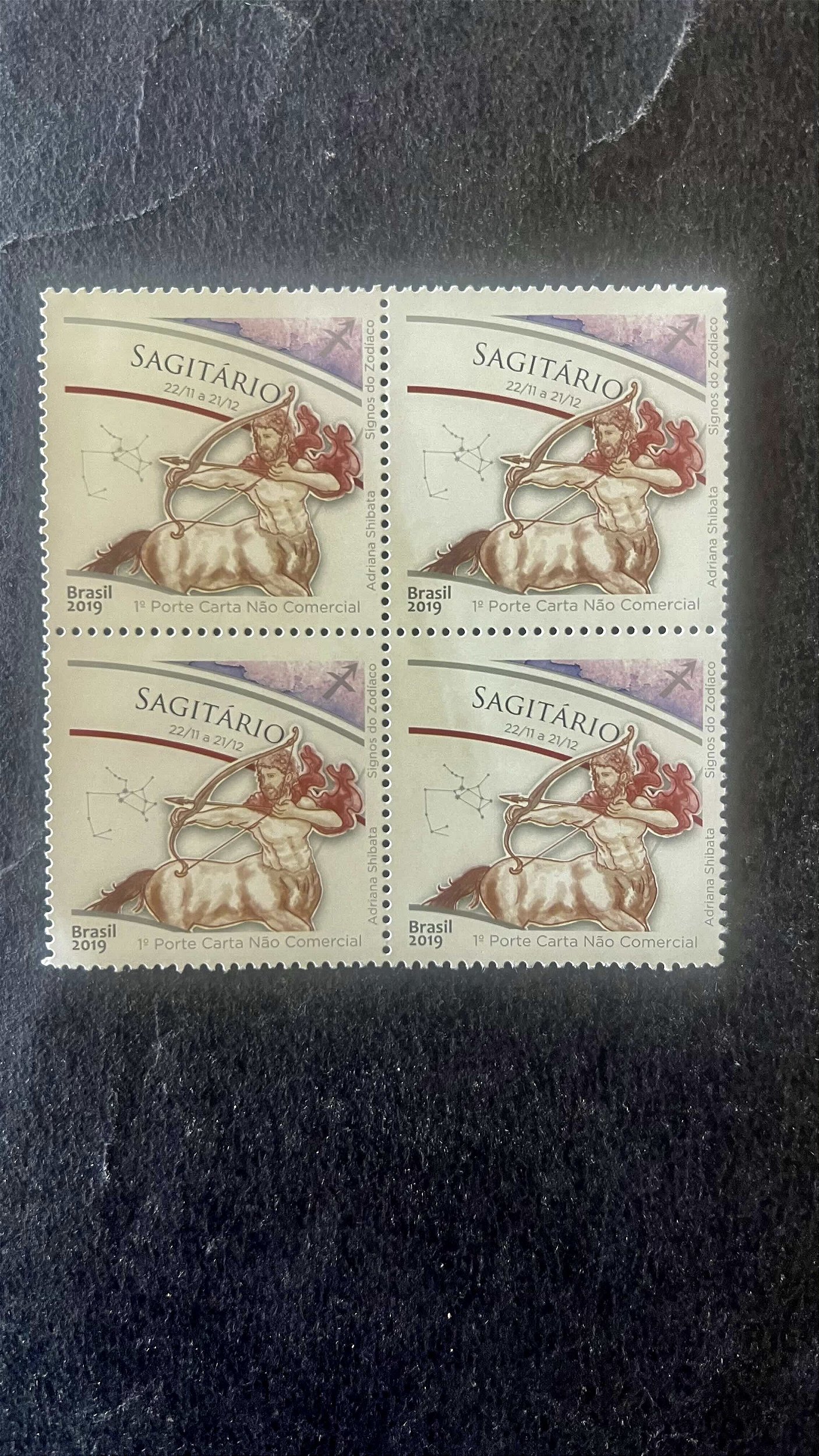 Quadra de Selos do Brasil - Signos do Zodiaco - Sagitário - Brasil 2019 - Mint - ref.763
