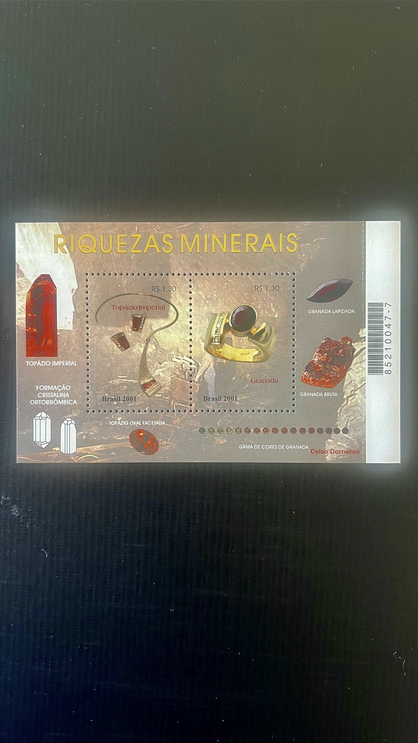 Bloco de Selos do Brasil - Riquezas Minerais - 2001 - Mint - ref.635